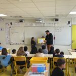 Nuestra primera visita a la escuela fue muy interesante, tuvimos el placer, además de conocer a nuevos compañeros franceses, de aprender leyendas típicas de su zona. En acabar esa actividad hicimos un challenge de matemáticas donde todos participamos de manera activa.