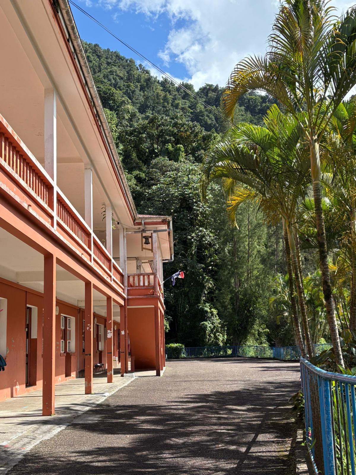 Allá visitamos la escuela de Fonds Saint Denis, una pequeña localidad situada en medio de la naturaleza cerca de la montaña más alta del país, el Monte Peleé.