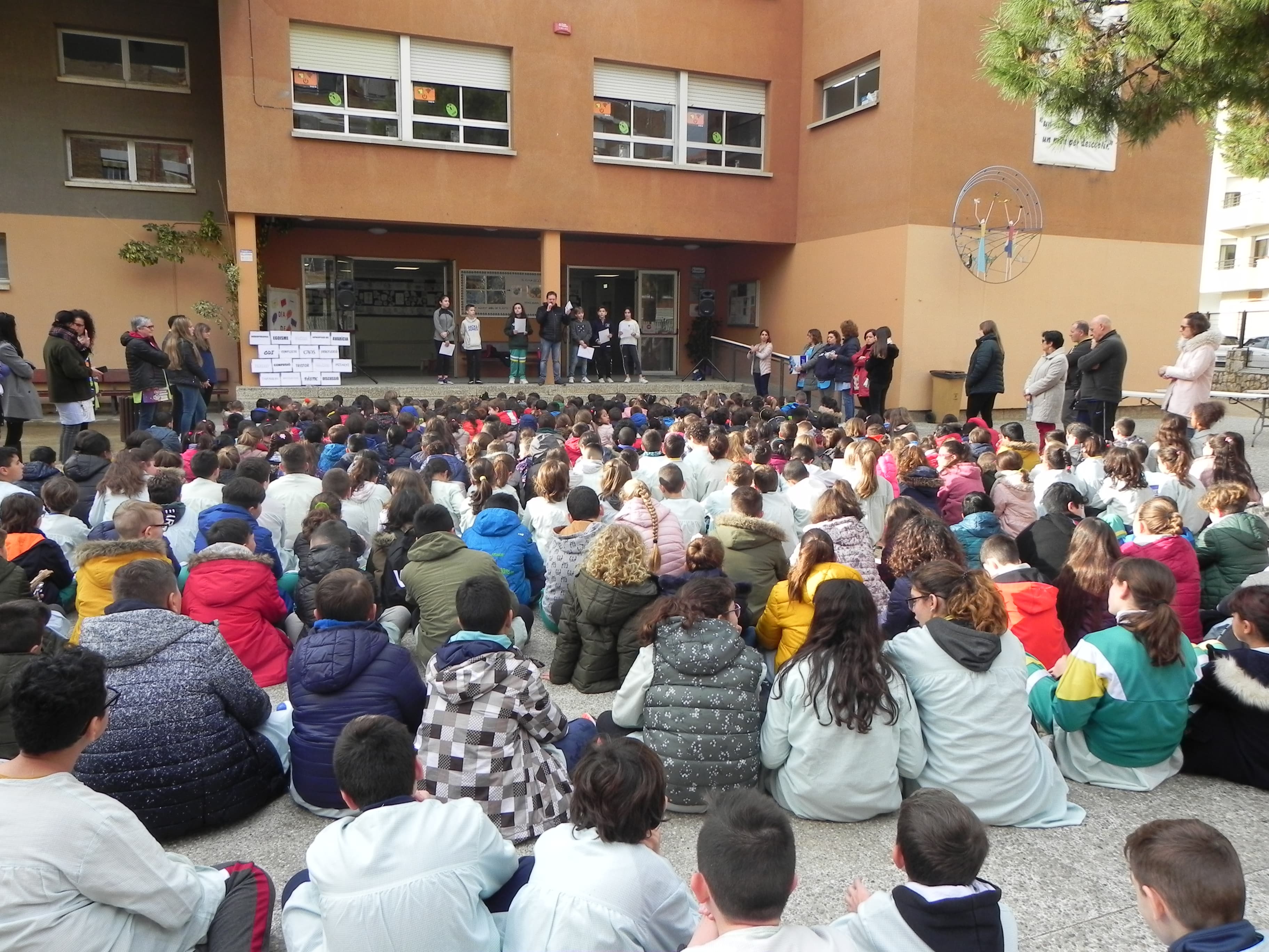 Nosaltres, com cada curs, ens afegim a la celebració amb un senzill acte de tot l’alumnat i professorat a l’entrada de l’escola.