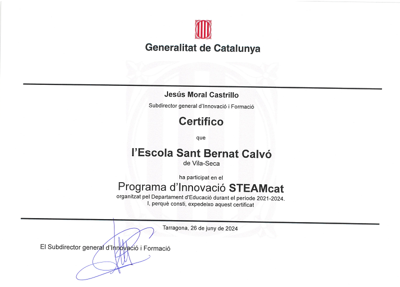 Aquest és el document que certifica la participació de la nostra escola al programa STEAMcat