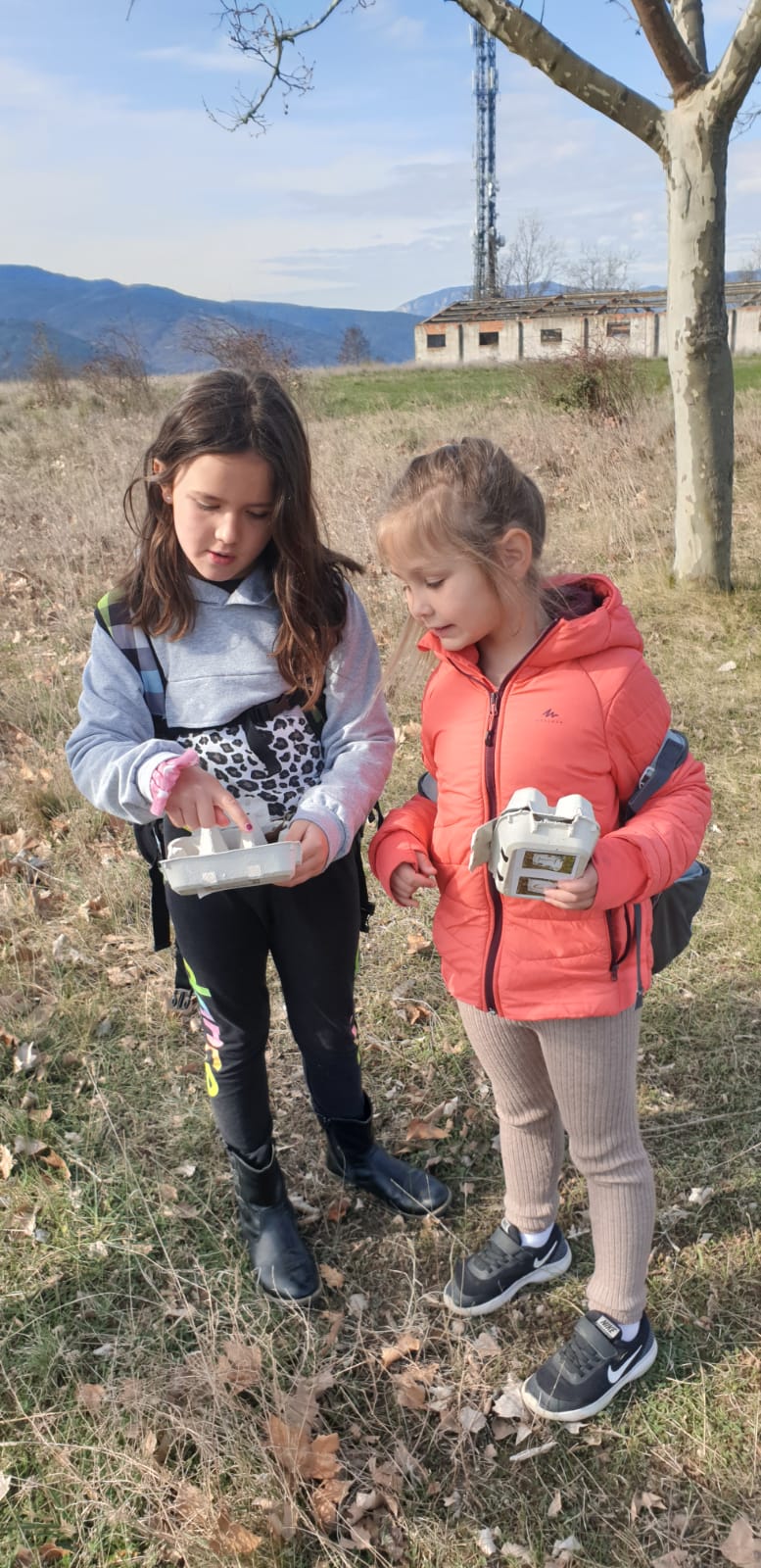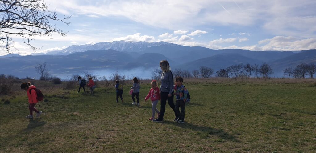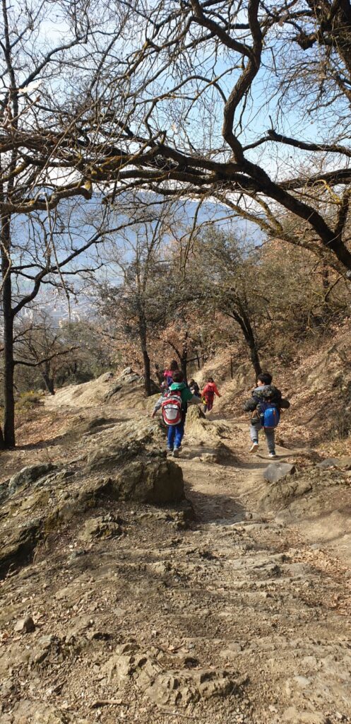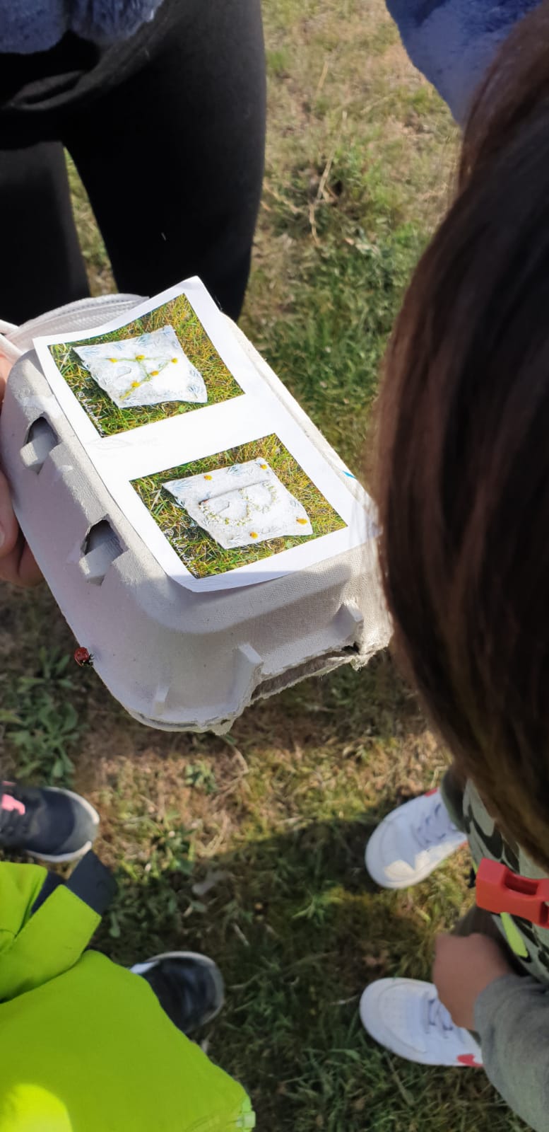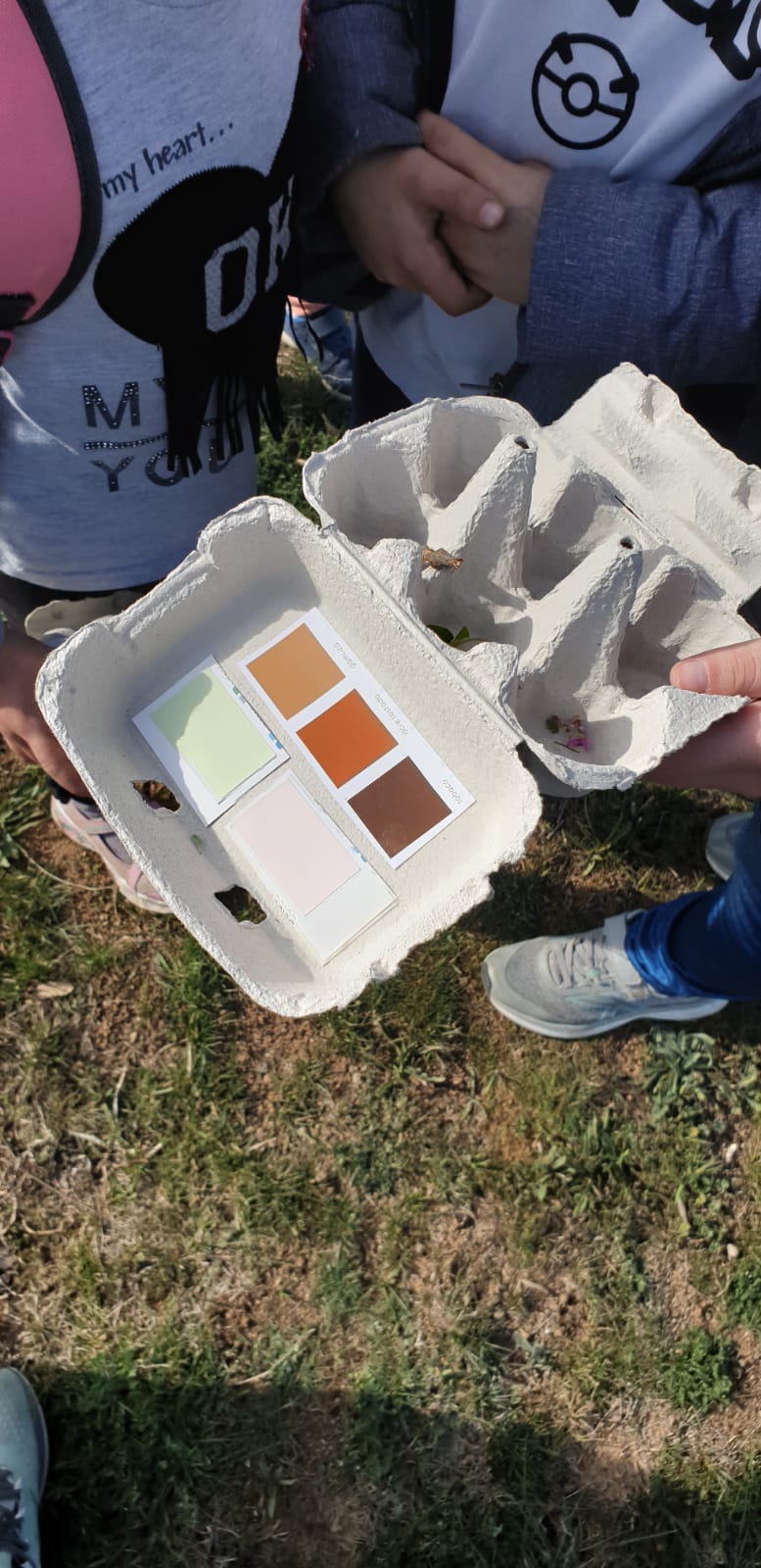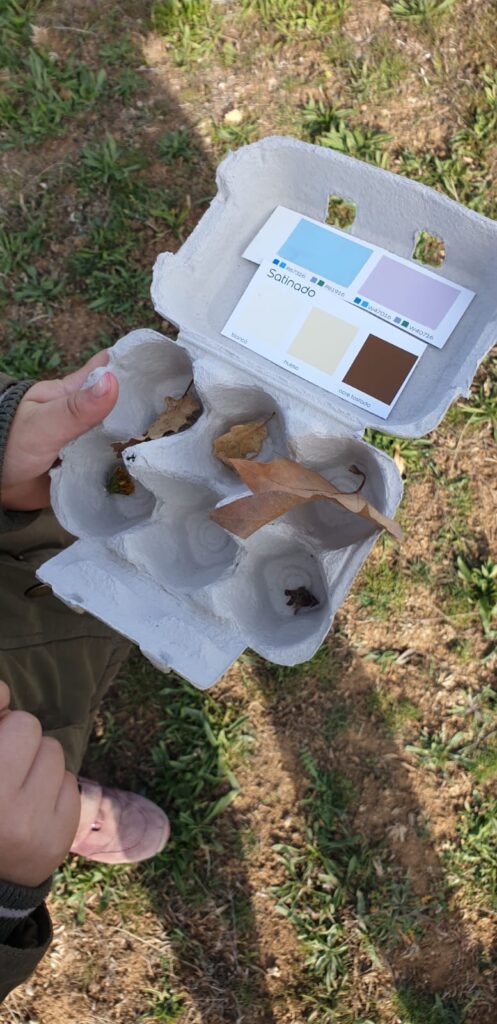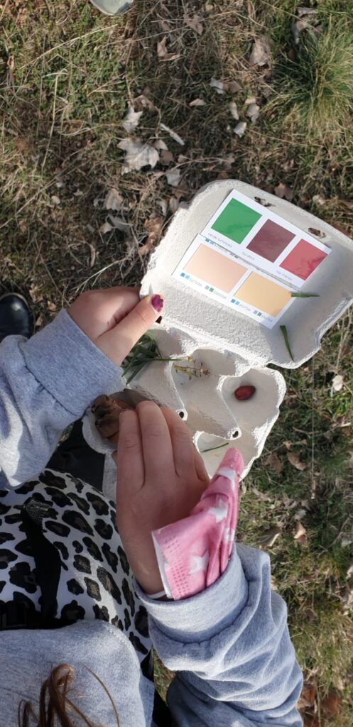 A part de contemplar les vistes, teníem unes oueres per grups internivells i vam haver de buscar els colors de la tardor amb unes paletes de colors i també una ouera amb dues lletres i havíem de treballar consciència fonològica a la natura i buscar elements naturals que tinguessin aquelles lletres.
