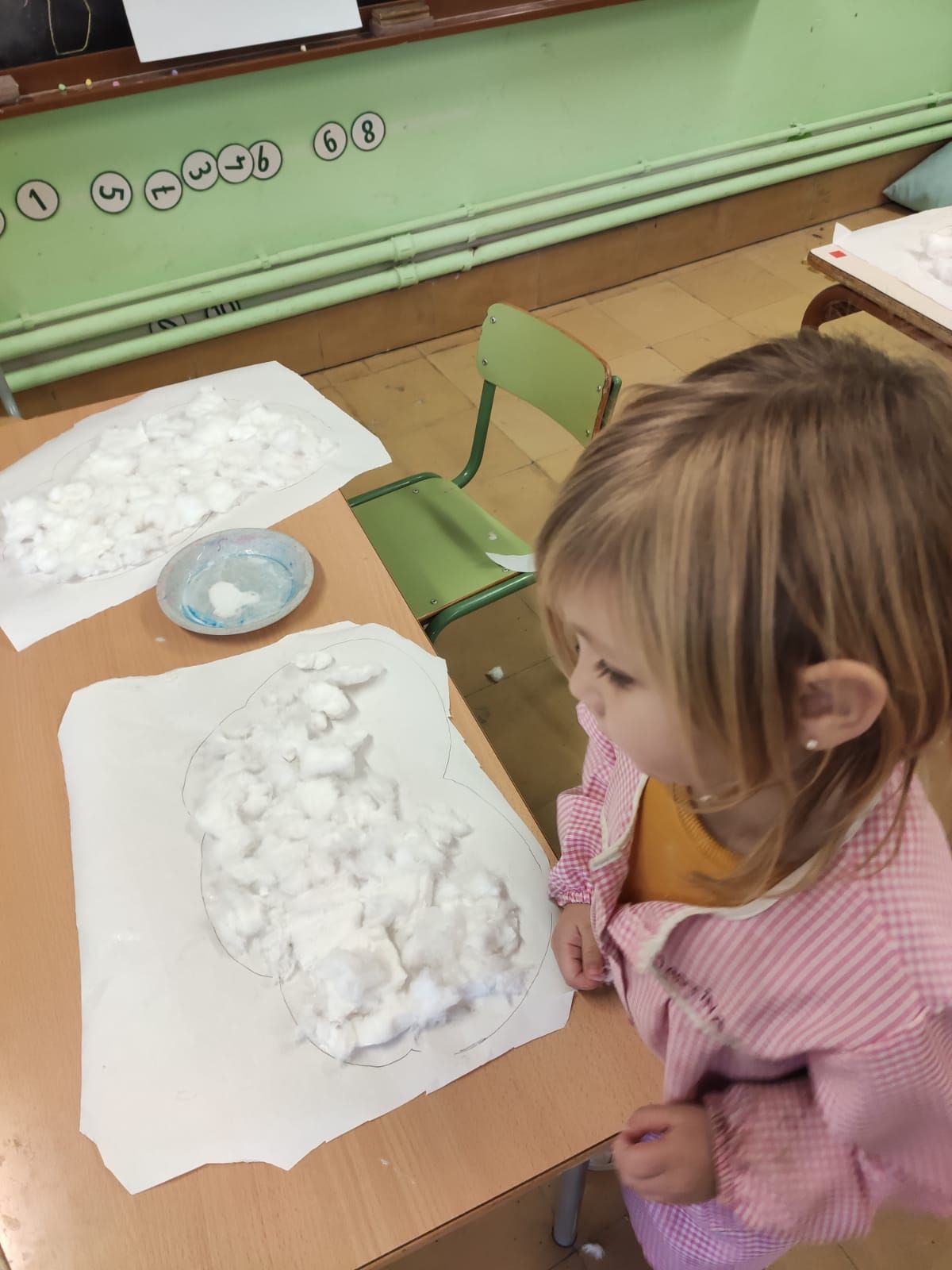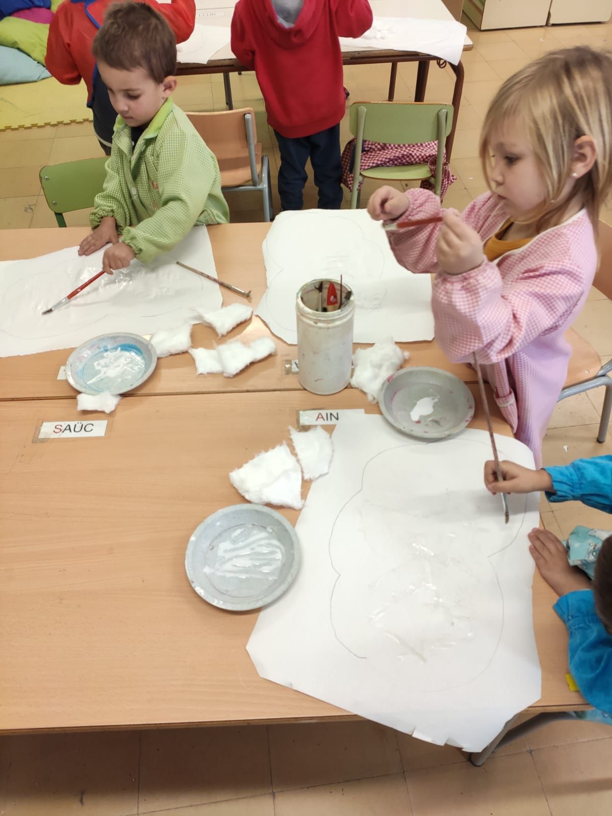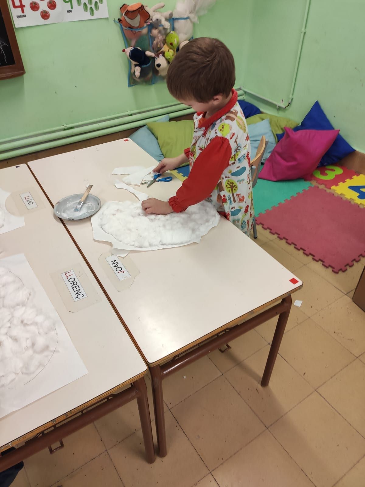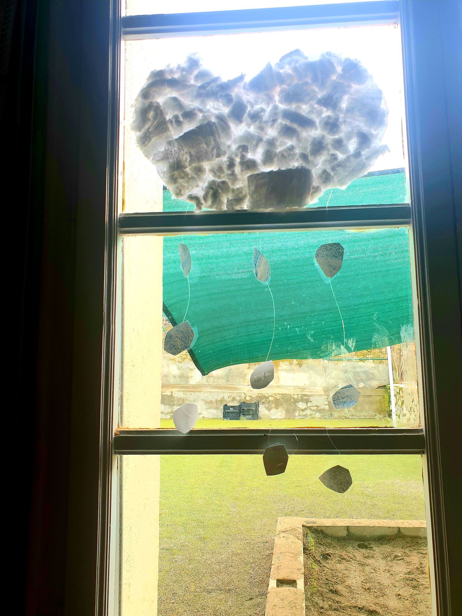 Decorem les finestres de la classe amb uns núvols d’hivern.