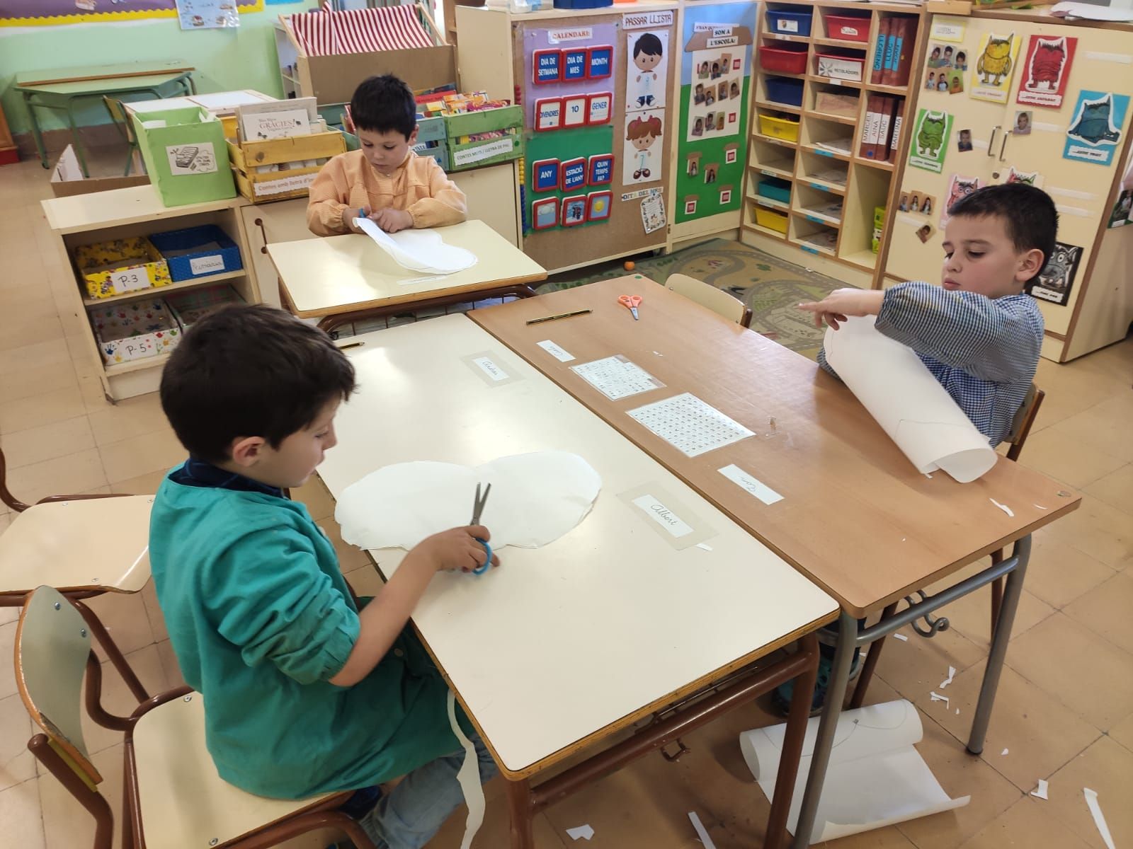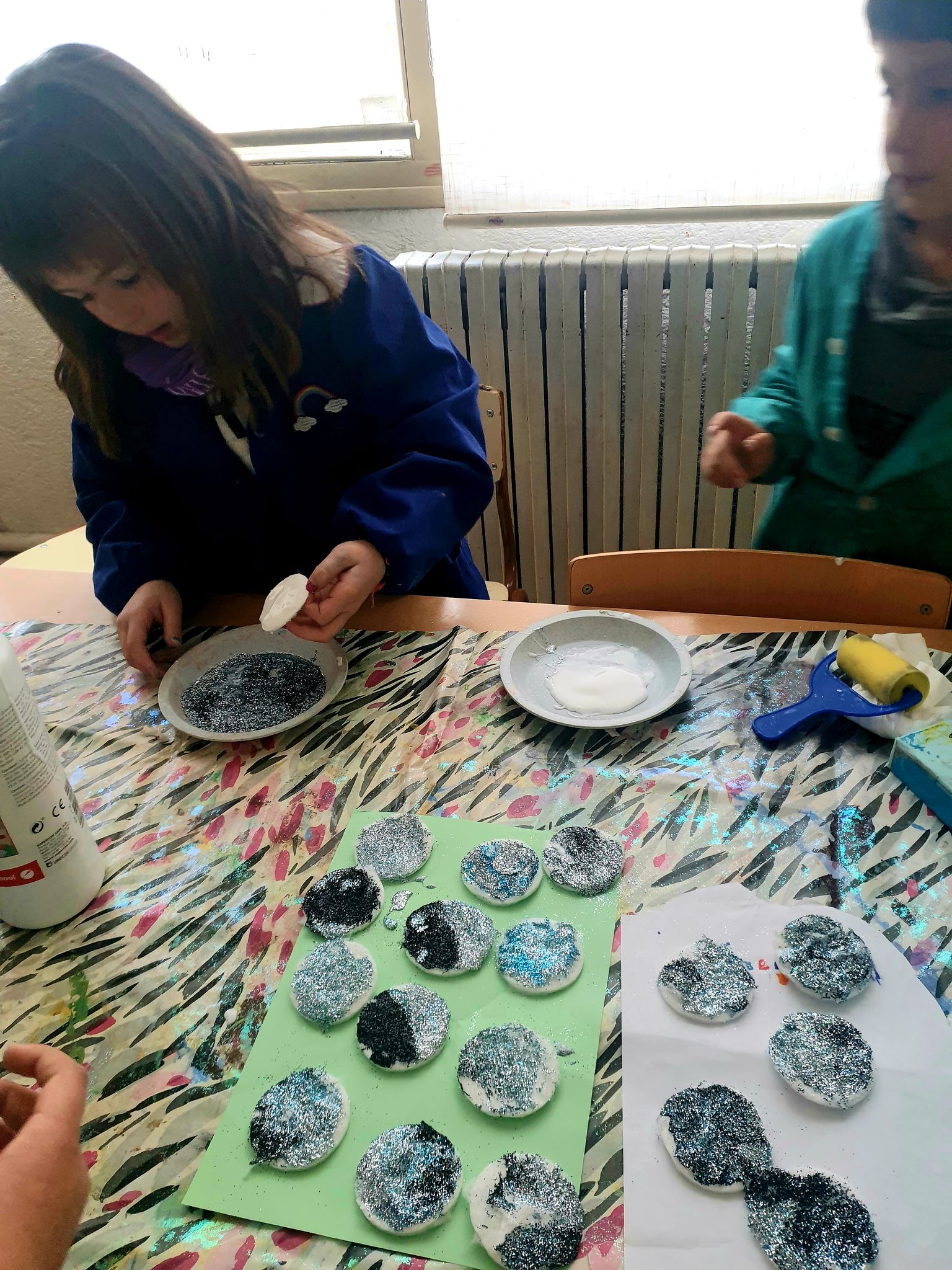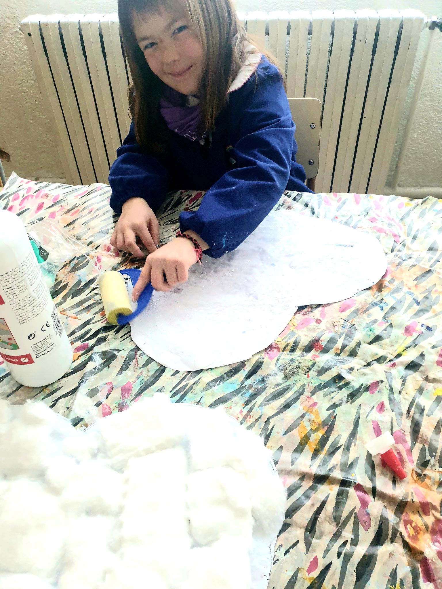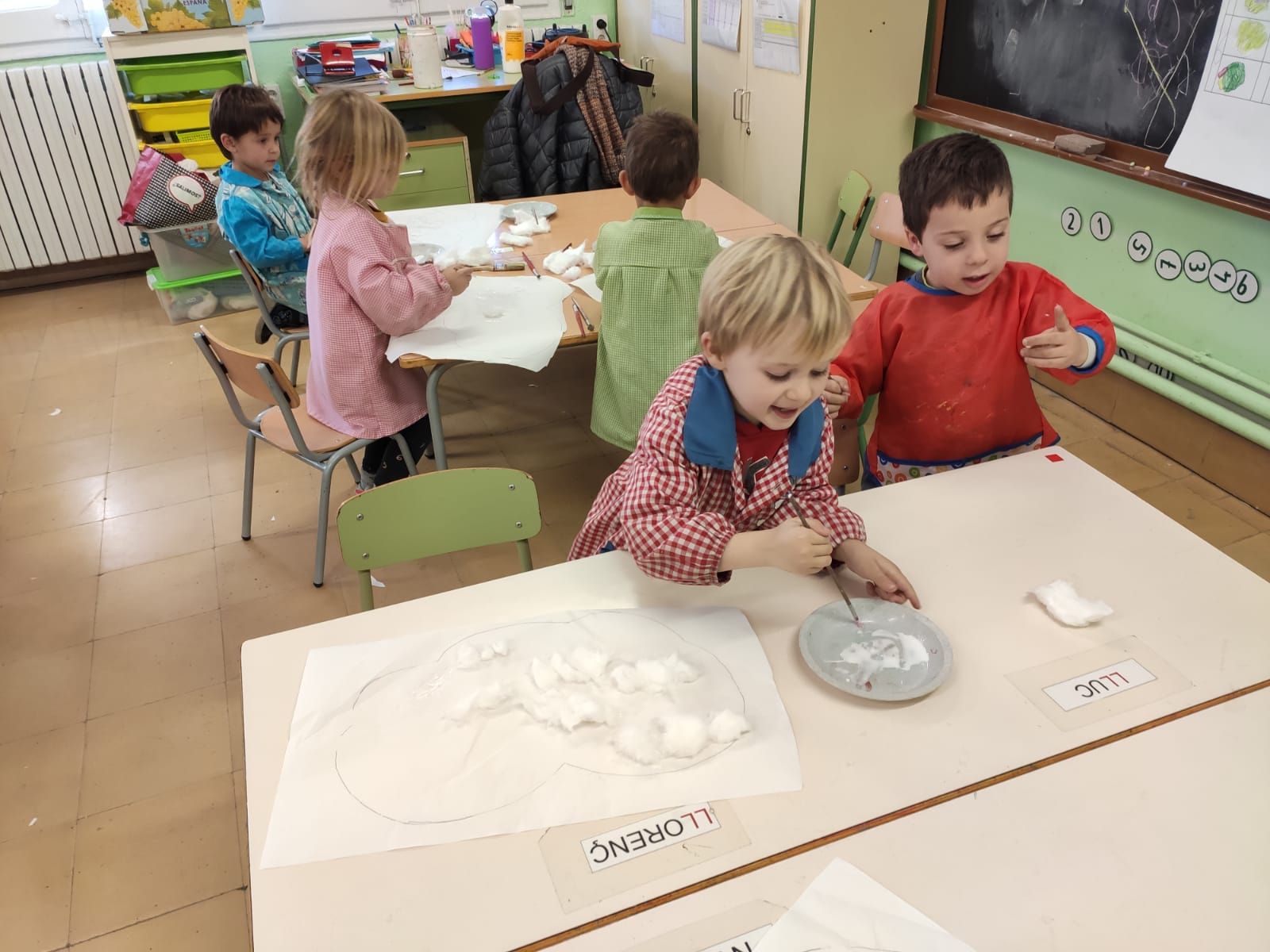 Decorem les finestres de la classe amb uns núvols d’hivern.