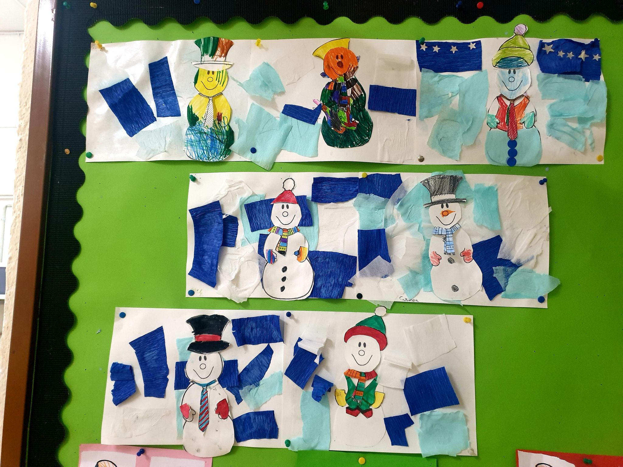 Fem un collage molt divertit amb un ninot de neu com a protagonista. Retallar, enganxar, pintar i dissenyar.