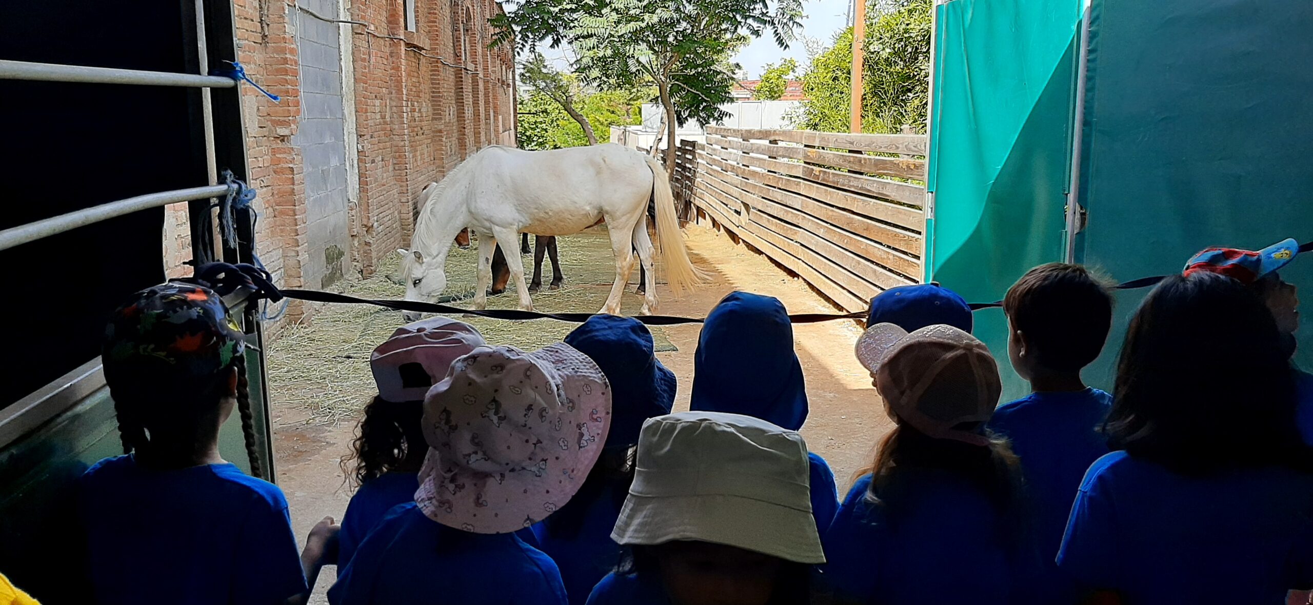 Hem tingut un primer contacte amb el món dels cavalls i el seu entorn, on hem après que mengen, on descansen, com són les seves dents o perquè porten ferradures. A més, hem pogut alimentar i raspallar alguns cavalls, i també, ens han deixat pujar en uns ponis!!
