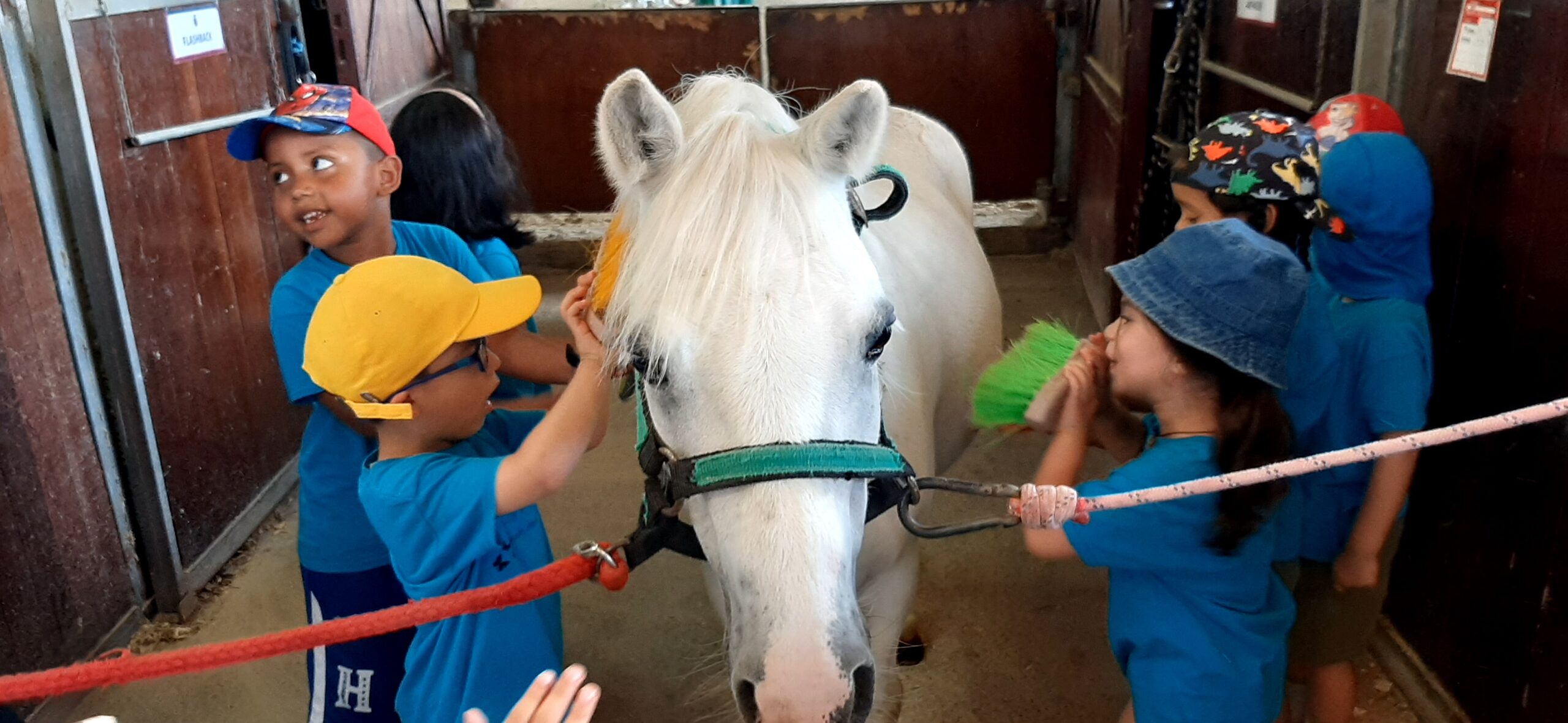 Avui els infants d’EI4, els Cotxes i els Diables, hem pogut gaudir d’un matí a l’escola hípica del Reial Club de Polo de Barcelona fent l’activitat “Cavall i Esport”. Una activitat on es fomenta l’amor i el respecte pels animals, la natura i els valors esportius.
