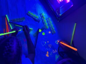 El taller de motricitat fina ajuda els infants a desenvolupar diverses habilitats motrius com la coordinació ull-mà, la pinça i el traç d’una manera lúdica i divertida. El taller de robòtica permet apropar als nens i nenes a la tecnologia i al llenguatge de la programació a través de la manipulació dels Bee Bot. En el taller dels jocs de taula els infants juguen en grup a diferents jocs seguint unes regles, aprenent que a vegades es guanya i altres no. Al taller de llum i ombres es pot experimentar amb la llum, la foscor i diferents textures i materials fluorescents que estimulen la creativitat dels infants. En el taller de dansa i moviment desenvolupen l’expressió corporal a través de danses i moviments lliures a partir d’un conte treballat. Al taller de teatre els infants poden potenciar les habilitats d’expressió oral, la memòria i la creativitat a partir de la representació de contes de maneres diferents. Per últim, en el taller de grans construccions els infants poden manipular i experimentar amb diferents materials de construcció (teles, fustes, petxines…) repartits per l’espai per realitzar diferents creacions de manera individual o en petit grup.