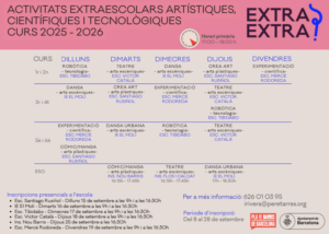 Activitats Extra Extra – Pla de Barris. (Inscripcions del 15 al 28 de setembre)