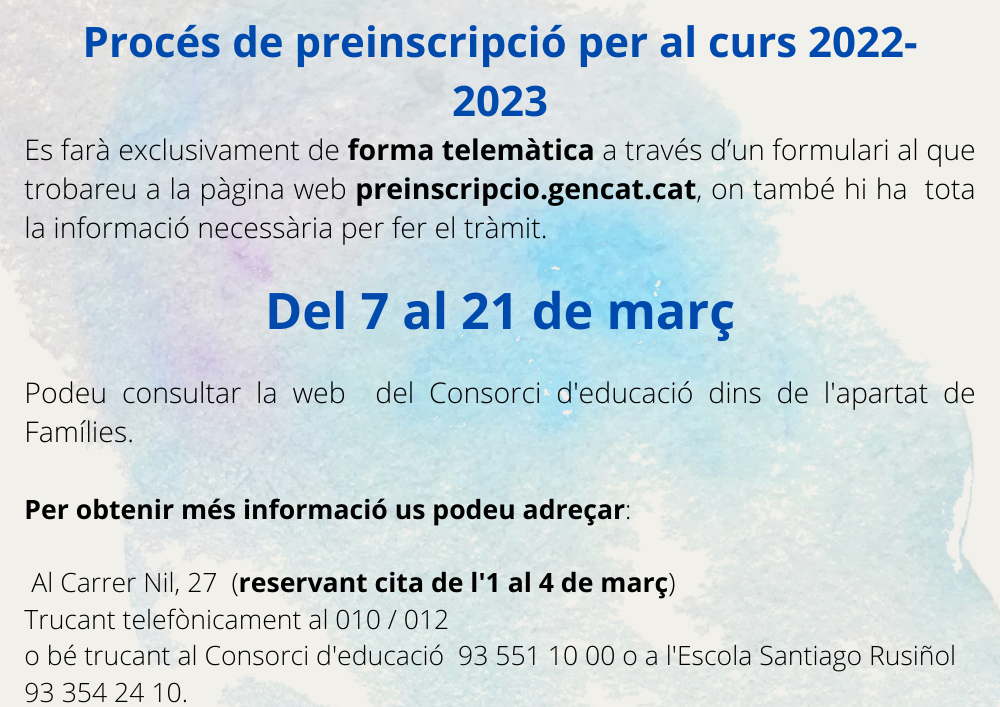 Preinscripció escolar 2022/2023Per admin / 17 de febrer de 2022 / Família - Escola General Portada / preinscripcio