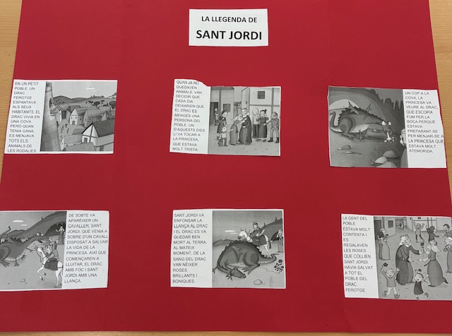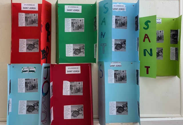 L’alumnat de l’aula d’acollida de Cicle Mitjà i Cicle Superior han treballat en festes i tradicions la Diada de Sant Jordi i també el dia del llibre que es celebra el dia 23 d’abril. A l’aula d’acollida hem llegit la llegenda de Sant Jordi i després hem realitzat un lapbook i també hem escrit la llegenda de Sant Jordi amb pictogrames. Per a l’alumnat nouvingut aquest curs serà el primer Sant Jordi a Catalunya. Gaudiu molt de la diada on aquest dia els carrers s’omplen de paradetes on venen llibres i roses.
