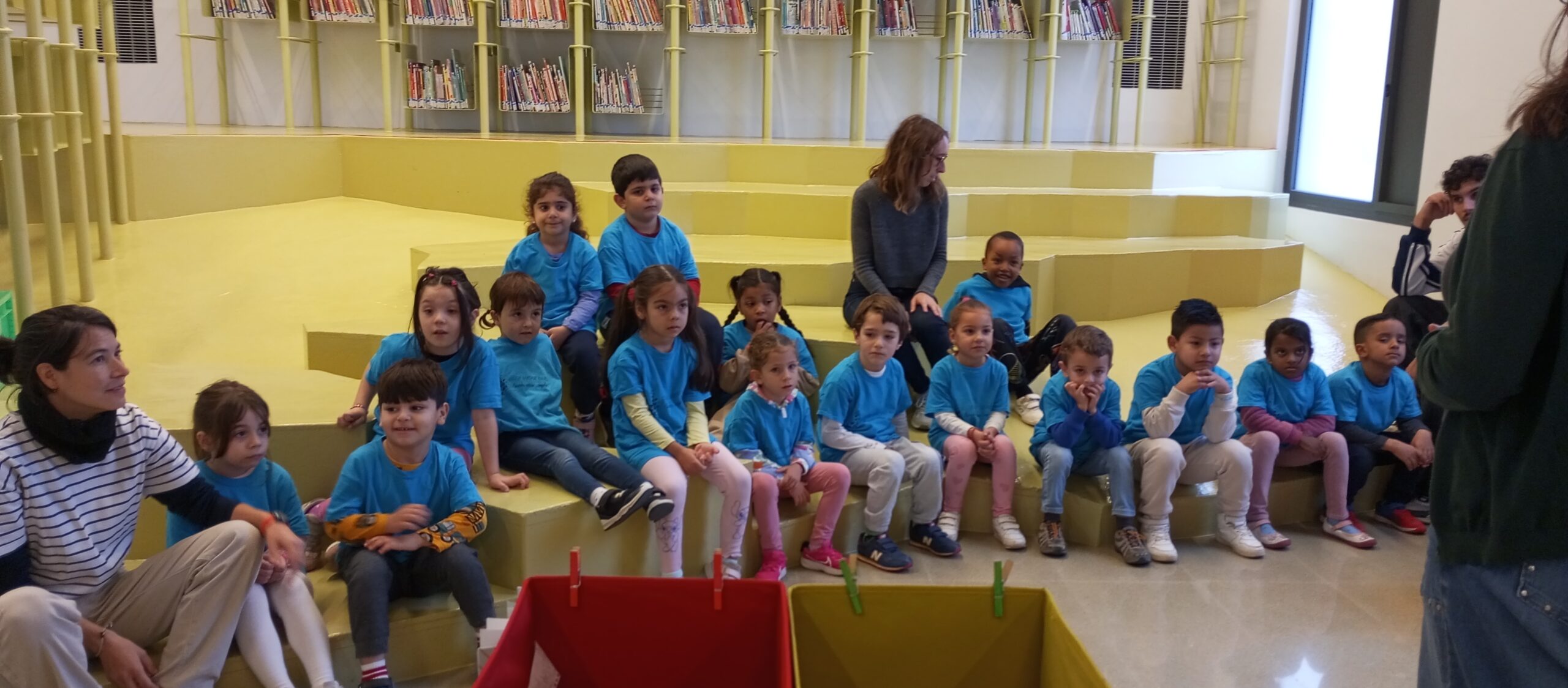 Els infants de I.5 A i I.5 B han visitat la Biblioteca de Nou Barris. En arribar, ens han explicat les normes de funcionament de la biblioteca i com fer ús del préstec dels llibres. Les bibliotecàries ens han mostrat la sala infantil, on podem trobar una pila de contes de diferents temàtiques. Així com DVD de pel·lícules que podem veure a casa.