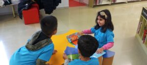 Hem vist llibres amb sons, llibres pop-up, llibres desplegables i finalment ens han explicat tres contes divertidíssims! També hem tingut una estona per explorar els diferents llibres de manera lliure. Ens ha encantat mirar els llibres i contes amb els companys/es. La visita ha acabat amb un esmorzar al parc, on també hem tingut una estona per jugar i recordar quines aventures havíem vist en els llibres.