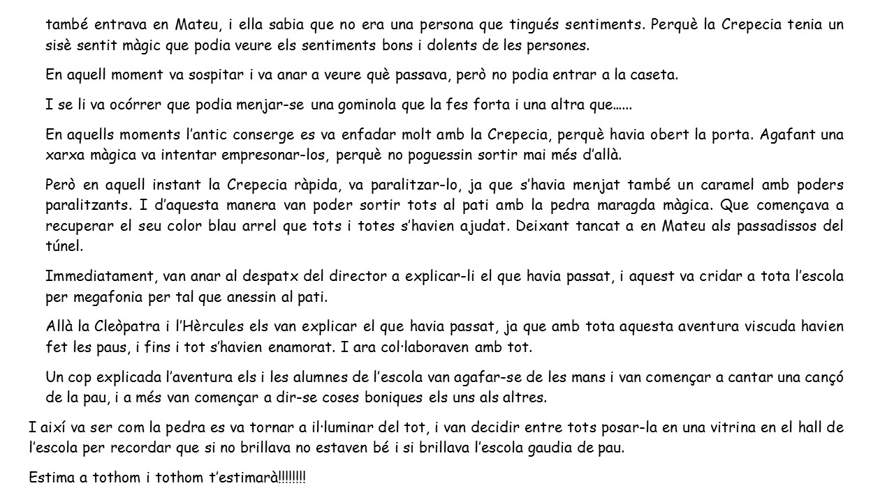 Després de la celebració del DENIP a l’escola, el passat 30 de gener, us volem penjar el Conte de la Pau que amb tant esforç i il·lusió els vostres fills i filles van escriure per celebrar aquesta diada. Qui va tenir la sort de poder assistir a la celebració oberta a les famílies, ja en va poder gaudir de la lectura del mateix i dels fabulosos dibuixos que acompanyaven al conte fets pel no menys reconegut il·lustrador Sr. Valentí Gubianas, que va voler obsequiar-nos amb la seva presència i ensenyar com és el seu dia a dia als nostres alumnes.