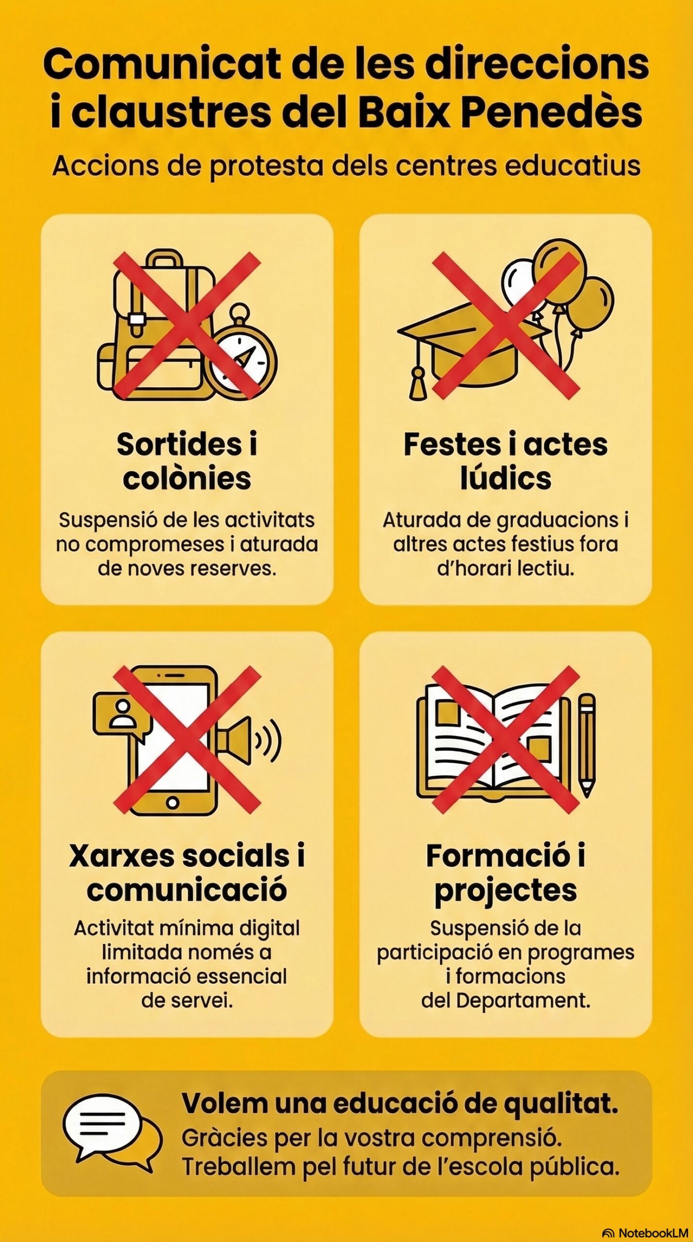 Agraïm de tot cor la comprensió de les famílies davant d’aquestes decisions difícils però necessàries.