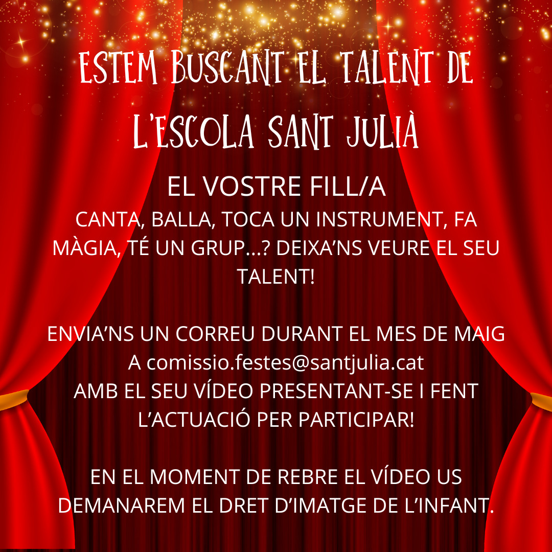 El darrer dia de curs, es farà a l’escola la gala de Got Talent Sant Julià! Els i les alumnes podran ensenyar a la resta d’infants i a les famílies les seves habilitats.