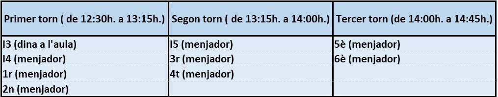 TORNS HORARIS MENJADOR