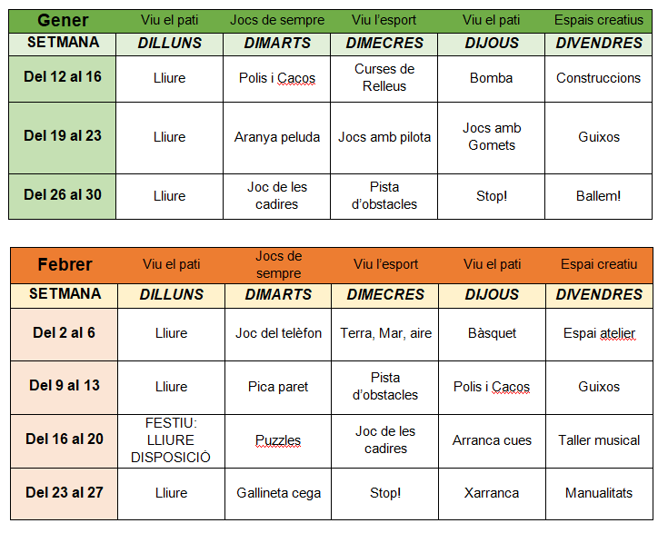 (Aquests horaris es poden veure modificats per les extraescolars de migdia)