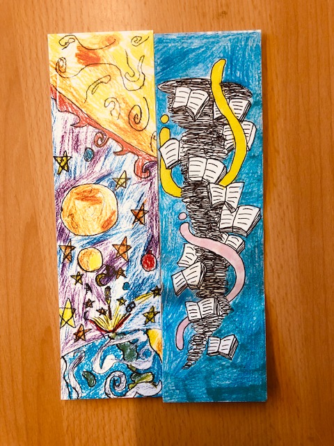 27/04/19Des de la classe de 5è A estem molt contents de tenir a dos dels guanyadors del Concurs de punts de llibre de la Biblioteca Can Coromines.
