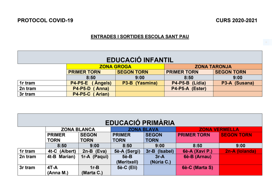 Per tal de tractar informacions sobre el funcionament d’aquest curs us avancem, tal i com us vam informar, que les reunions d’inici de curs es portaran a terme de forma telemàtica, la setmana del 7 al 10 de setembre.