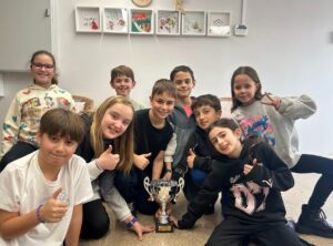 Ens fa molta il·lusió compartir amb vosaltres aquesta fotografia de l’equip d’escacs de l’extraescolar de l’escola amb la copa aconseguida en el torneig!