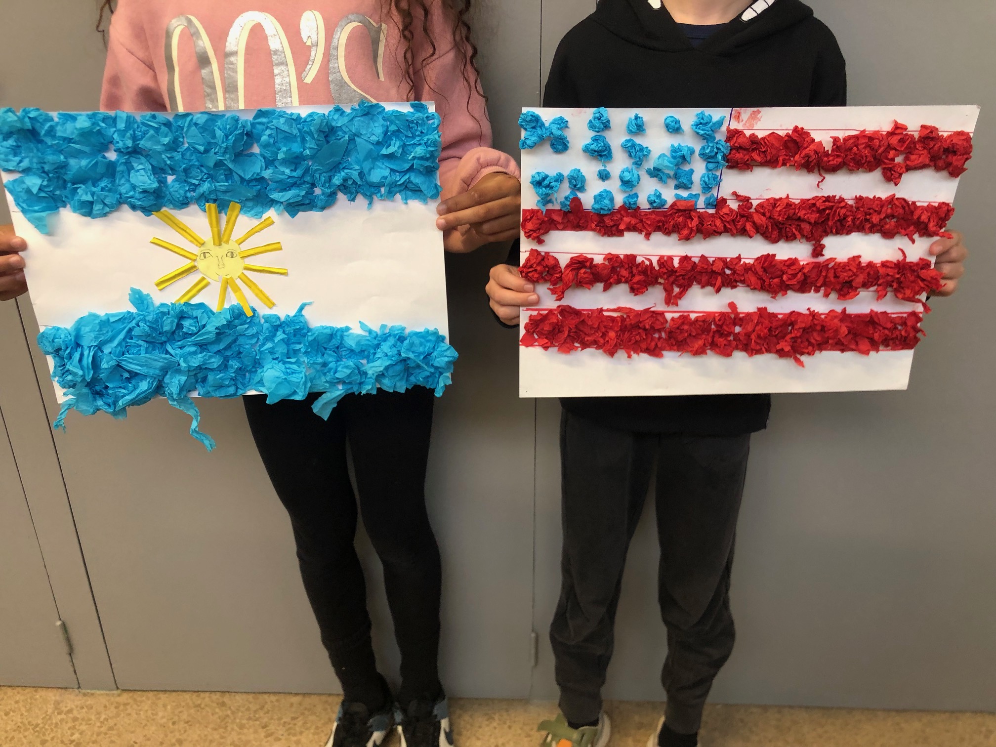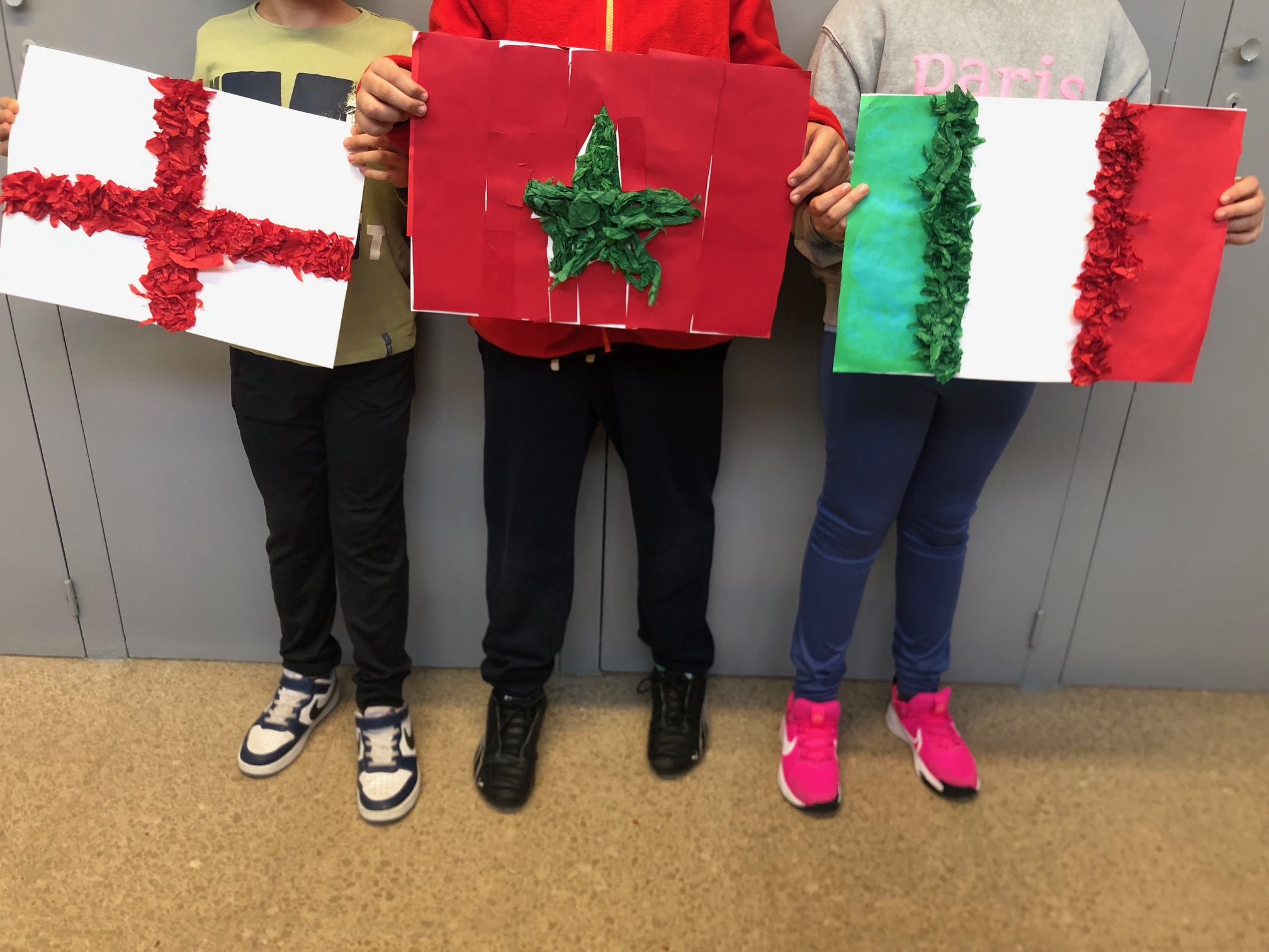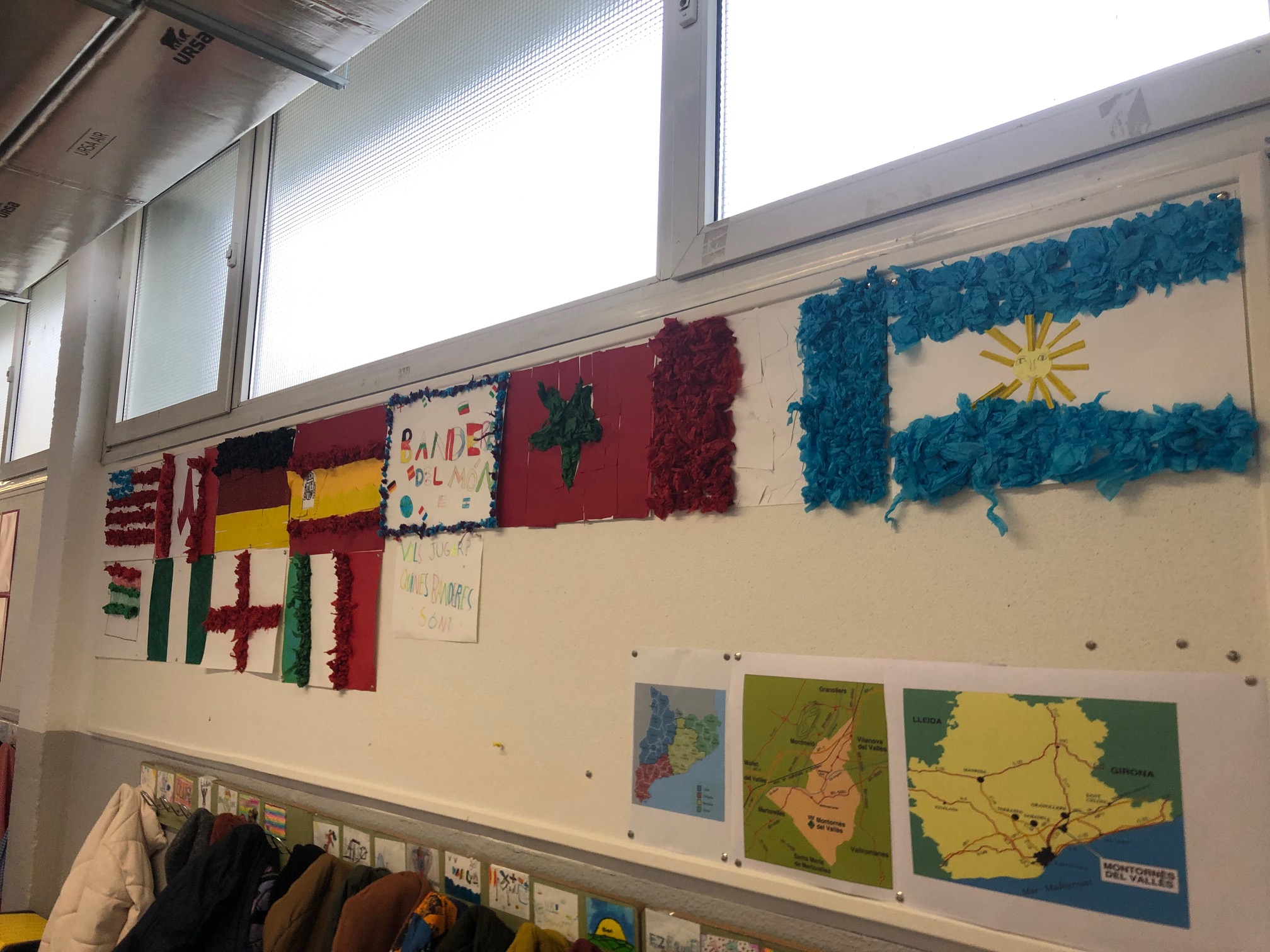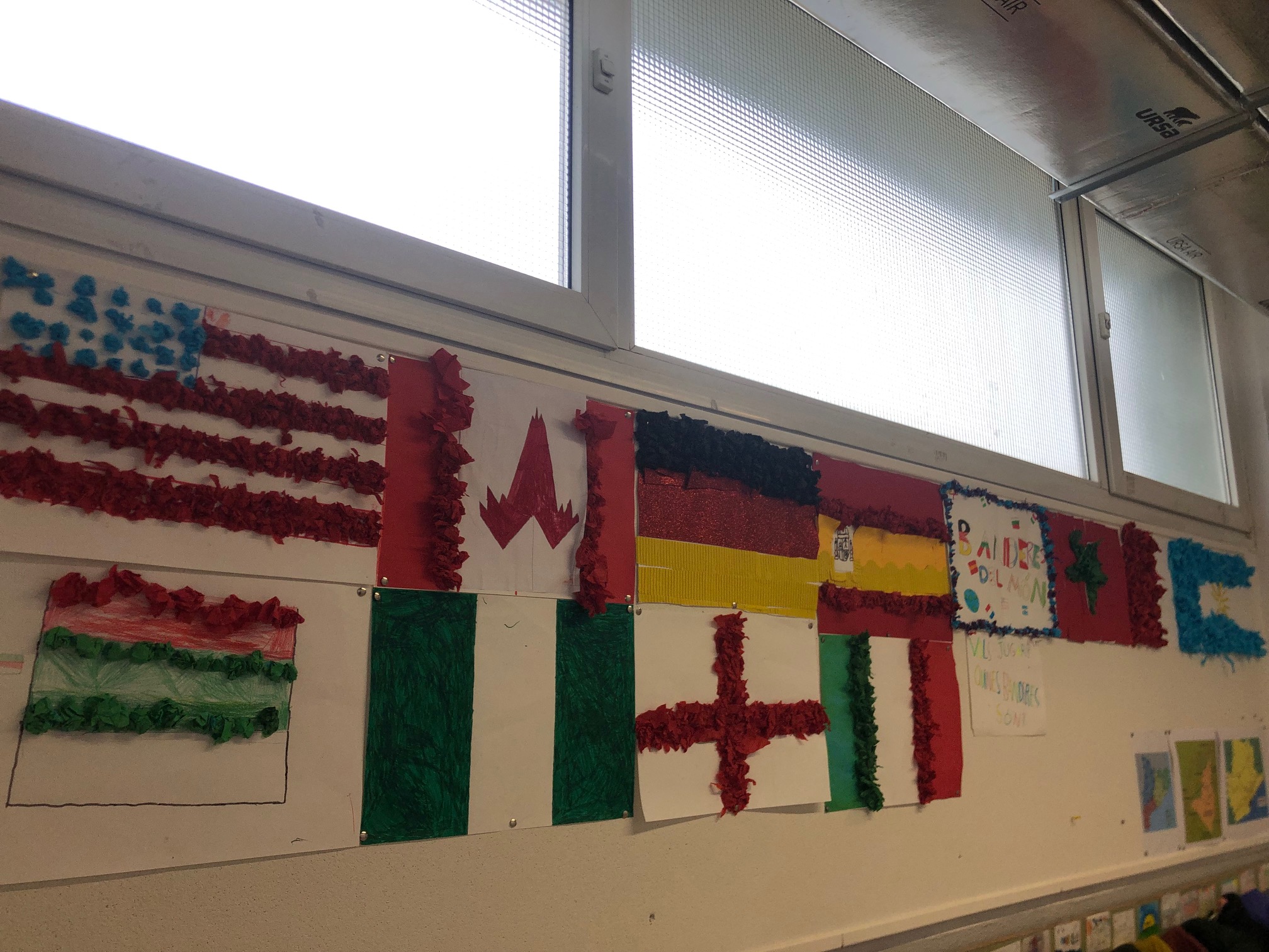 En l’altre taller i aprofitant els continguts treballats, els i les alumnes en petits grups s’han endinsat en buscar a l’ordinador banderes dels països del món, per després poder reproduir-les artísticament.