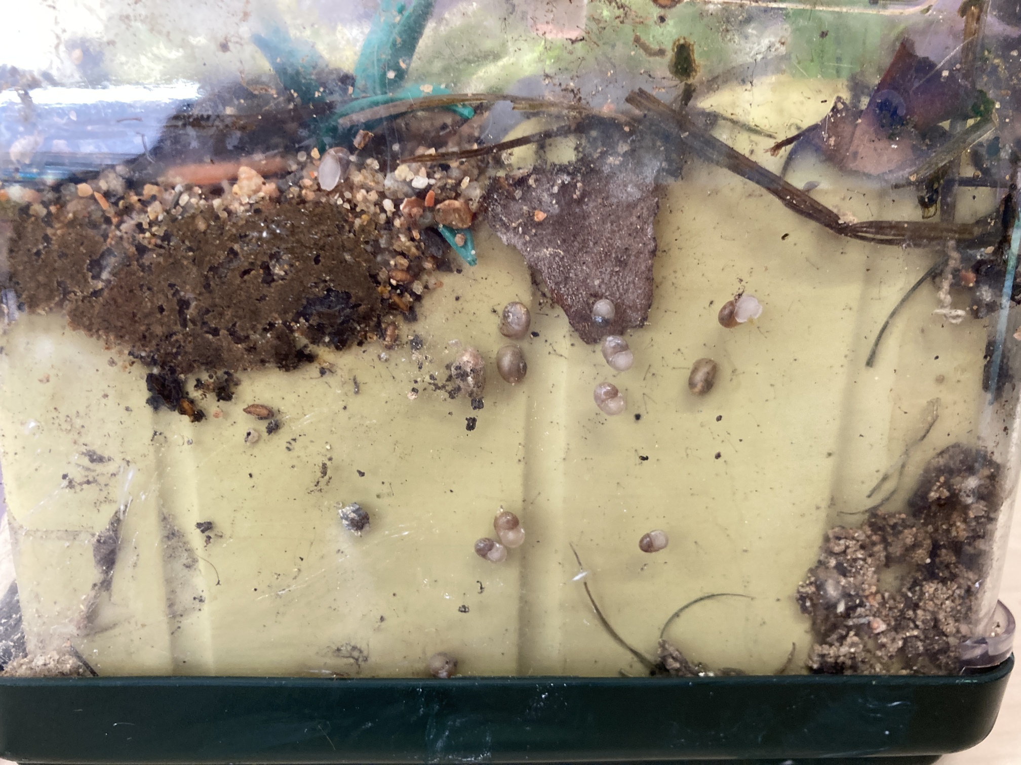 Però alguns dies veiem que hi havia alguns cargols grans enterrats a terra! I és que estaven posant ous!