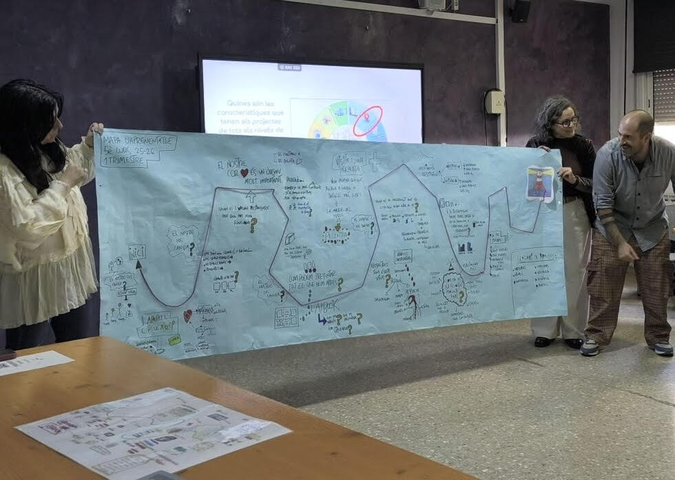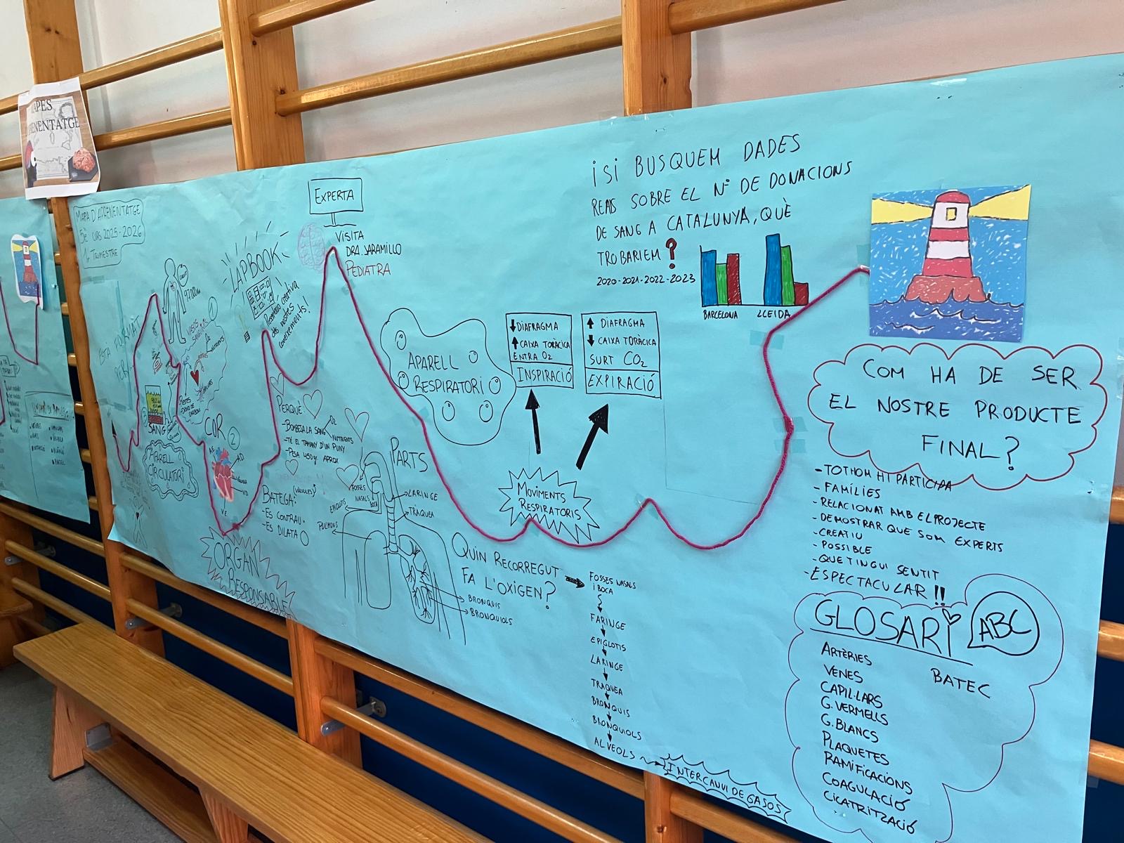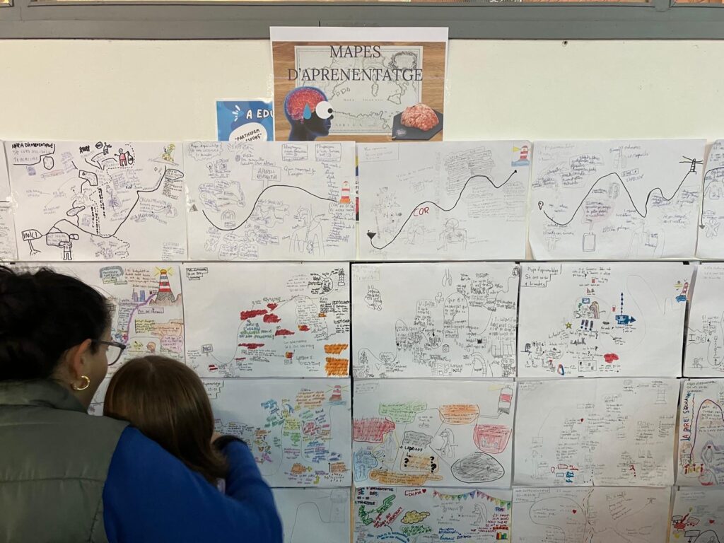 | Des de l’escola entenem els mapes d’aprenentatge com una eina d’autoregulació que permet a l’alumnat situar-se al llarg del projecte i que l’ajuda a identificar visualment, a partir de diferents formes de representació, allò que està aprenent i com ho està aprenent. |