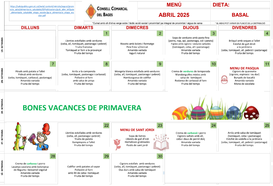 Menú de menjador: ABRIL