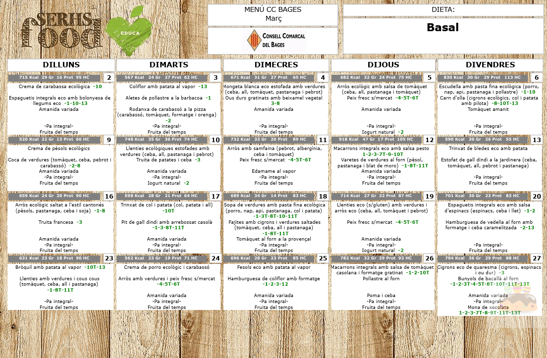 - Menú de menjador: març