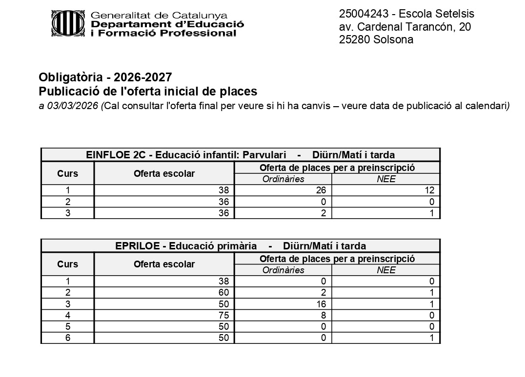 Per a més informació, consulteu a la pàgina web del Departament d’Educació.