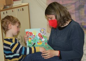 A la classe de les Pinyes hem rebut la visita de la mare de l’Oriol, el nostre protagonista. Ens ha explicat tres contes molt bonics. El primer era “El follet Oriol i la rosa màgica”, on un follet és l’encarregat d’anar a buscar la rosa màgica per tornar l’alegria al seu poble. El segon era un llibre que parlava dels mesos de l’any i, a mida que l’anava explicant, anàvem trobant el mes del naixement dels nens i nenes de la classe. I el tercer, era un llibre per aprendre a comptar fins el 10.