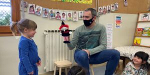 El divendres vam tenir espectacle de titelles amb el Lluis, el pare de l’Ester, que ens va portar els tres porquets a la classe! Els vam ajudar a construir les seves casetes amb tots els materials però també a desmuntar-les ajudant al llop a bufar!