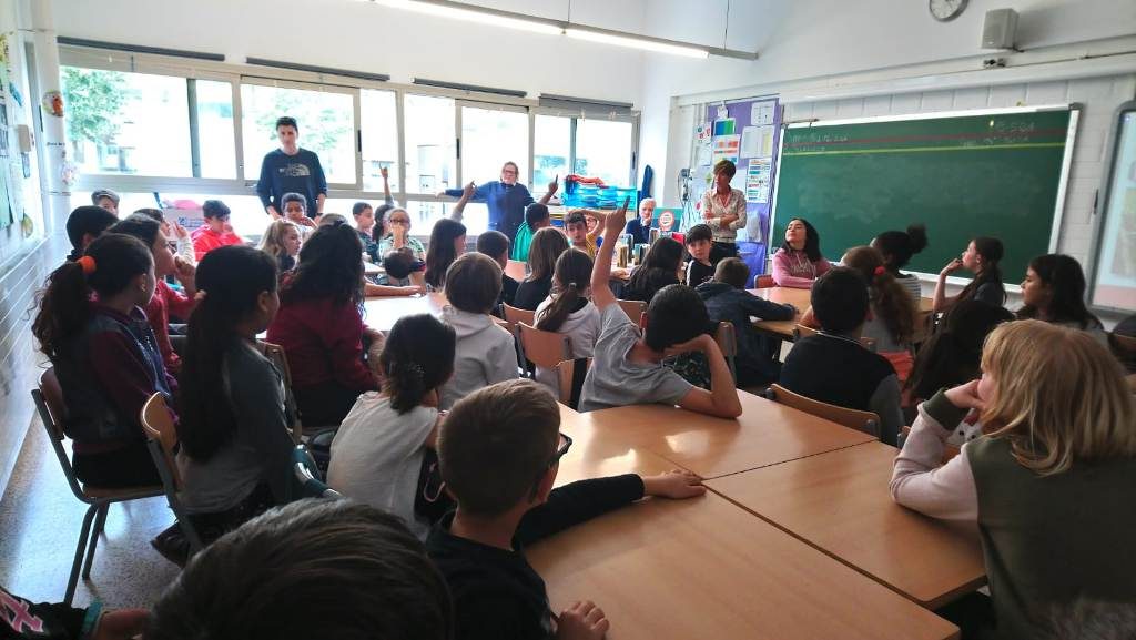 L’alumnat de 1r i de P5 comparteixen matí a Lourdes.