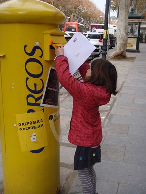 El dilluns al matí vam anar a tirar la postal a la bústia de davant de mercat municipal
