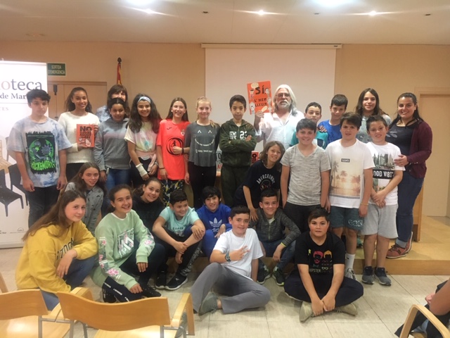 Aquest matí els i les alumnes de 6è hem anat a la biblioteca per conversar amb l’autor del llibre: “NO LLEGIRÉ AQUEST LLIBRE”. Jaume Copons, l’escriptor, ens ha explicat un munt d’anècdotes i nosaltres li hem pogut preguntar tot allò que ens ha encuriosit, tant del llibre com de la seva trajectòria com a escriptor. A més, ens ha signat els exemplars d’alguns llibres que portàvem. Gràcies a la biblioteca d’Arenys hem pogut gaudir d’aquesta activitat.