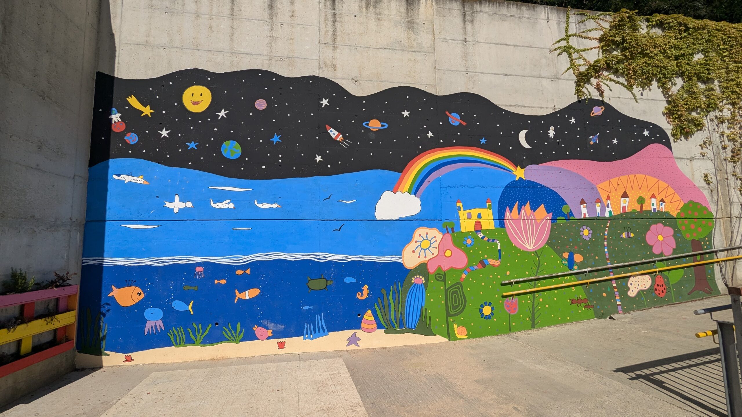 🎨 Culminem aquesta segona gran fase amb l’impressionant mural dissenyat i fet a partir de les propostes de les nenes i els nens.