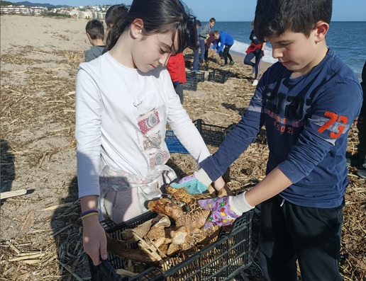La tarda va ser molt productiva! Amb una hora, els i les alumnes de 5è i 6è, molt conscienciats i motivats , van recollir 5 big bags de rizomes i mig sac de microplàstics.