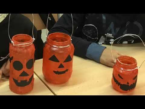 Al matí als tallers de plàstica hem fet uns porta espelmes de Halloween i unes aranyes !! Ens ha agradat molt!!!!