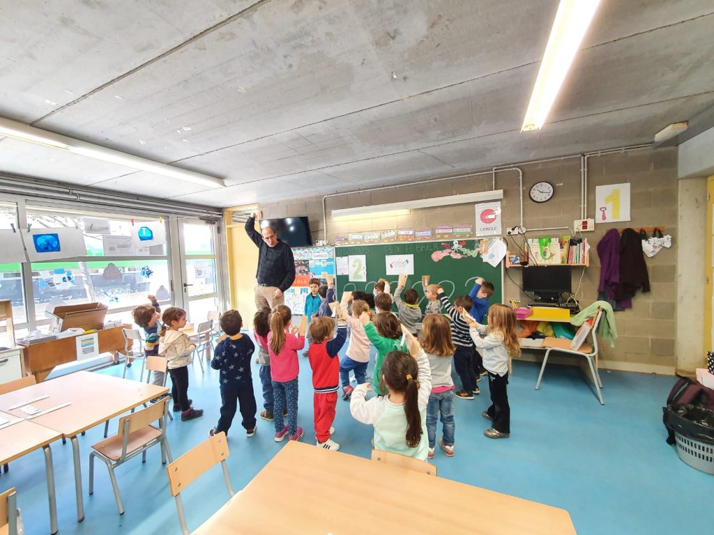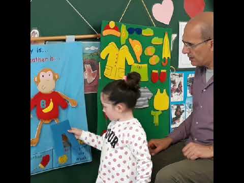 Ens agrada fer anglès amb el Carles.Amb ell aprenem a parlar en anglès; “Hello”, “goodbye”,”colours”, “numbers” ,”family vocabulary”… Aquest dilluns amb el Carles vam estar repassant el “vocabulary”de la “winter clothes”. D’un en un vam anar vestint el nostre amic “monkey” amb roba d’hivern i de pluja,perquè aquell dia plovia.
