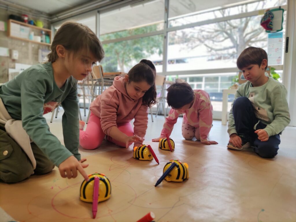 Els nens i nenes d’I5 seguim avançant amb les Beebots i hem començat a programar fent camins i cercles amb retoladors! Mireu-ne el resultat!