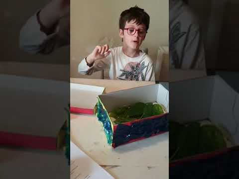 En Ferran ha decorat una caixa, amb material reciclat, d´allò més xula per als seus cucs seda.