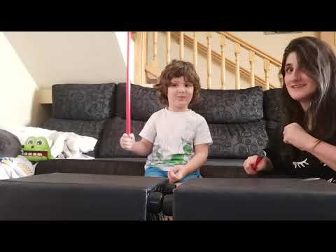 En Marc, amb uns puffs i uns pals de fregar, s´ha fet una bateria d´allò més molona! ?
