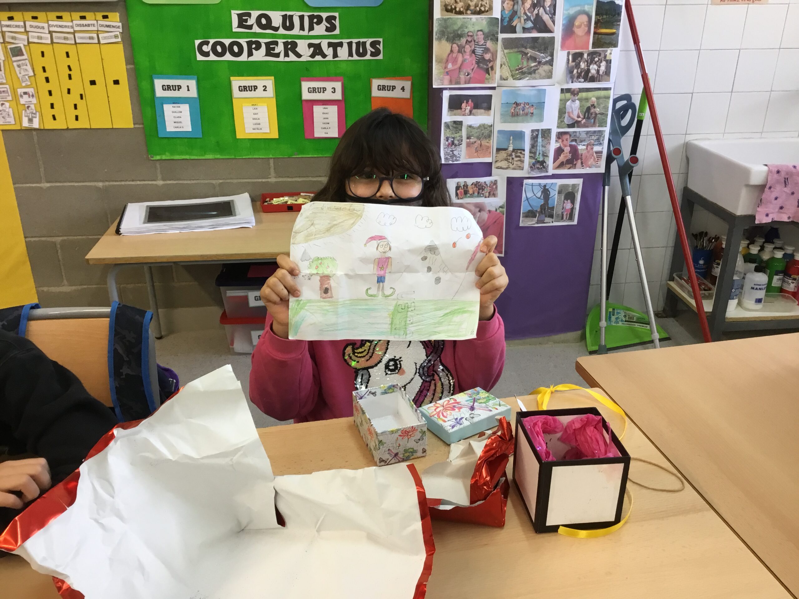 A 4t hem començat el segon trimestre amb molta alegria. Hem obert els regals de l’amic invisible i, com sempre, ha estat divertit i emocionant alhora. Són regals que no es troben a les botigues i estan fets amb el cor! També a la tarda hem pogut ensenyar i compartir amb els companys i companyes les joguines que ens han portat els Reis Mags.