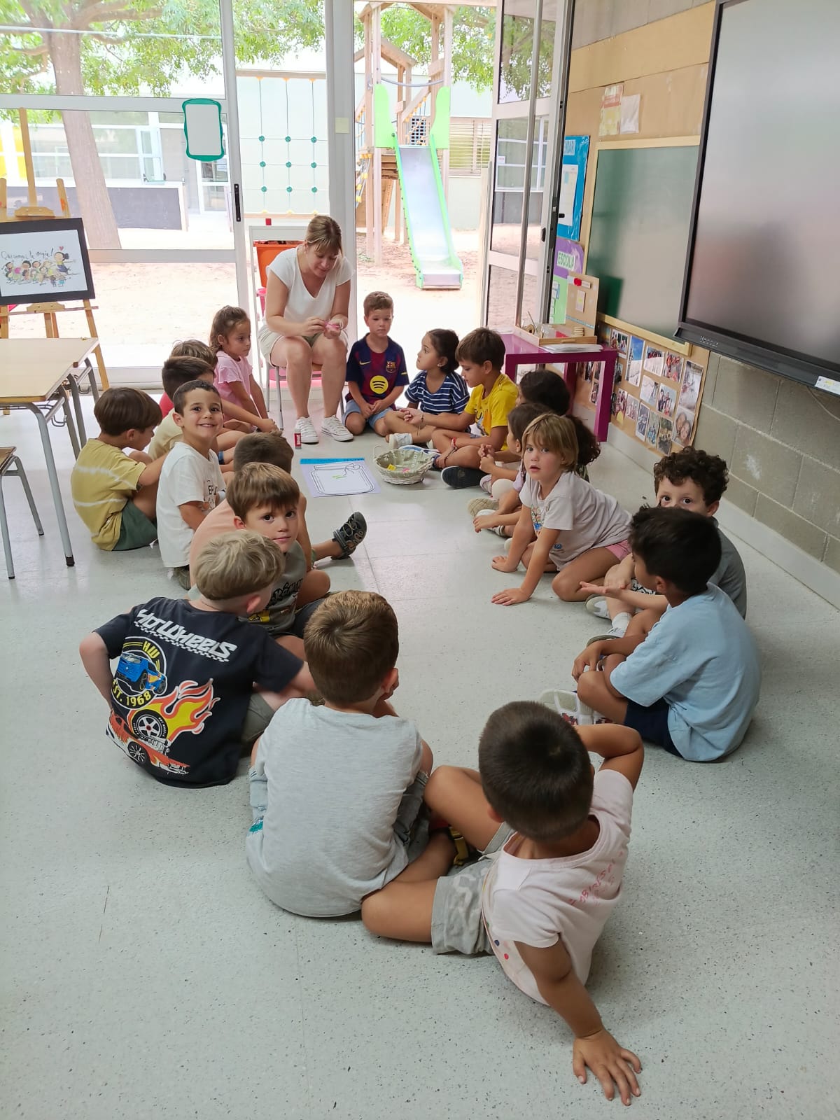 Els més petits de l’escola hem fet una dinàmica de presentació amb una pilota. Són dies d’acolliment, de descobertes i de primeres interaccions. A les classes d’I4 a la dinàmica de presentació en rotllana ens hem dit bon dia, hem trencat el gel i hem compartit el nostre color preferit. I, a les aules d’I5 hem fet la dinàmica del pot dels desitjos, on hi hem posat el que desitgem per aquest nou curs.