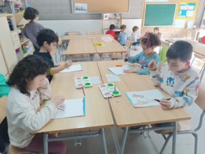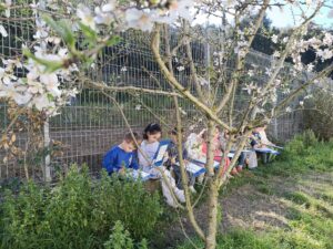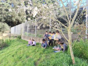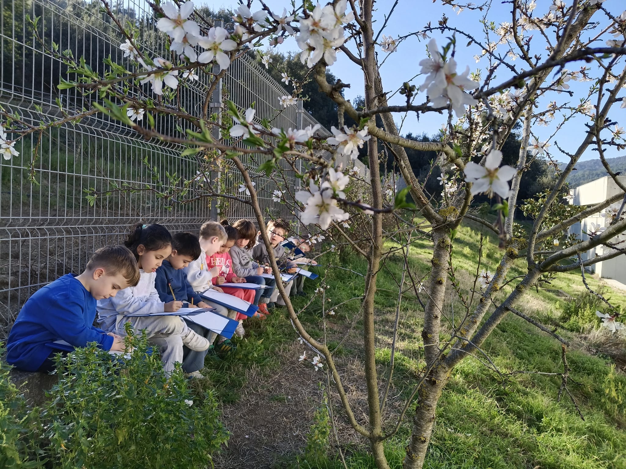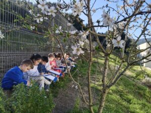 Els nens i nenes d’I5 hem anat al pati dels cirerers i hem dibuixat l’ametller que ha començat a florir. Després a l’aula l’hem pintat i decorat.