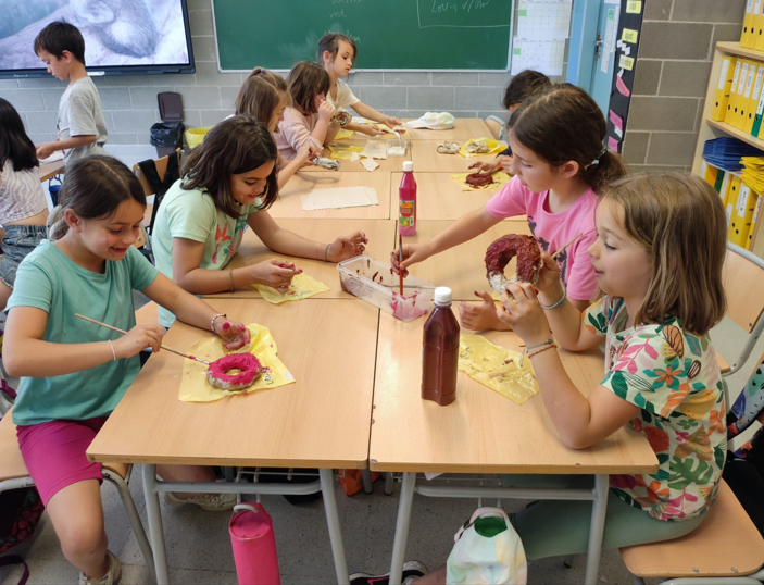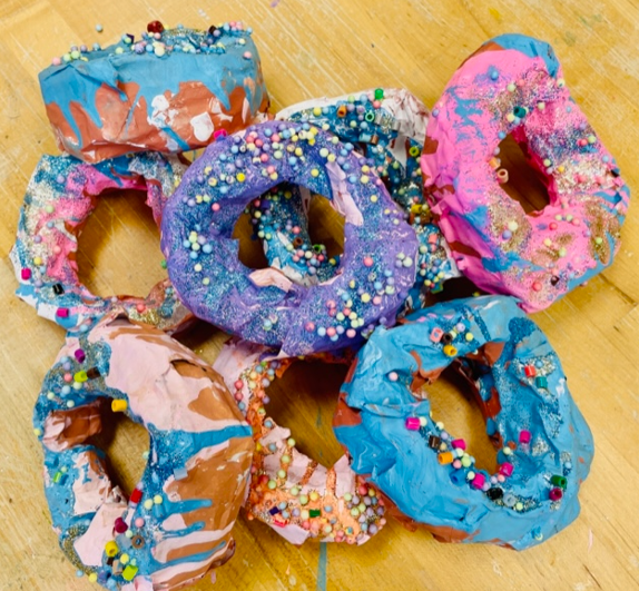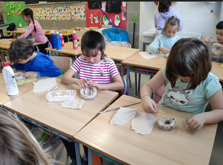 Els i les alumnes de 2n de primària, des de l’àrea de plàstica, hem conegut una mica a l’artista Claes Oldenburg. El seu camp de treball engloba l’escultura, la pintura, el dibuix, el gravat i l’actuació artística. Tot i que va néixer a Estocolm (1929) va viure a Nova York des dels 10 anys. A l’aula hem vist algunes de les seves obres com Clothespin Sculpture, Typewriter Eraser, Spoonbridge and cherry. No obstant, ens hem centrat en la seva obra del Donut. Així que hem buscat la manera per treballar el volum i intentar fer donuts com els que va fer Oldenburg. Us agrada com ens ha quedat?