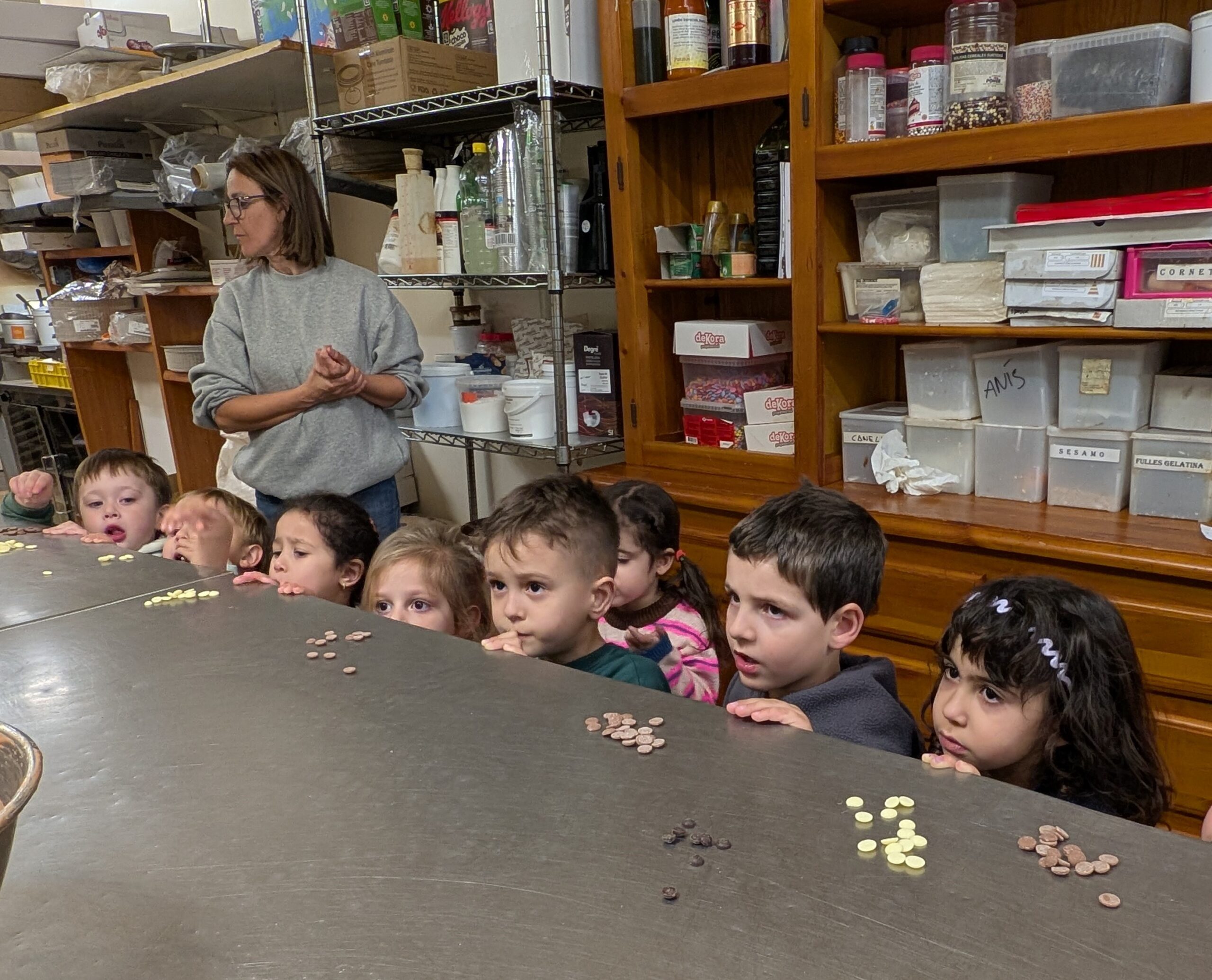 Ens van deixar tastar la xocolata blanca, la xocolata amb llet i la negra a veure quina ens agradava més, cadascú tenia les seves preferències, però ens van agradar totes!