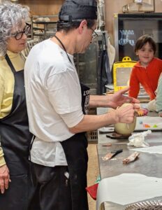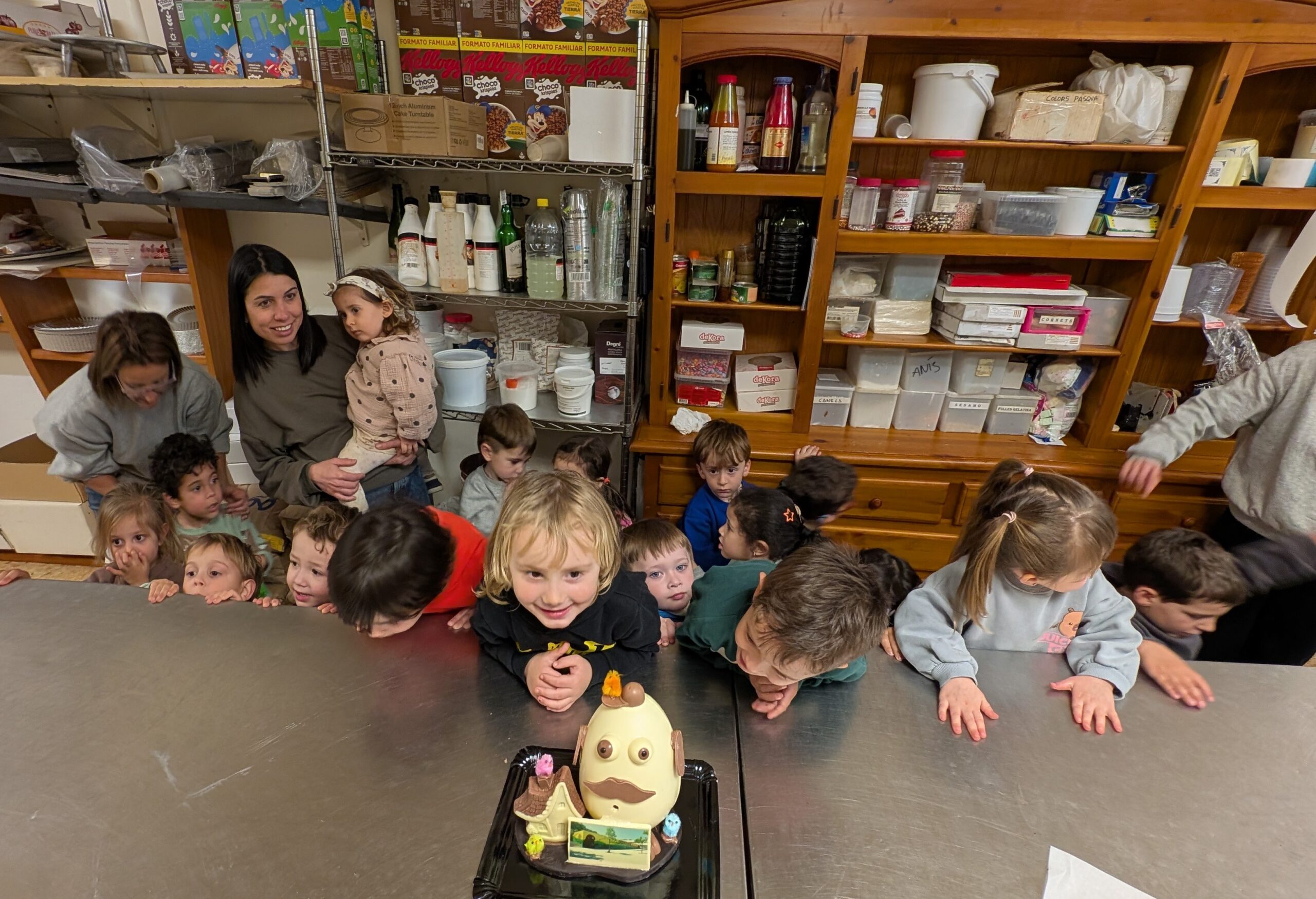 Com cada any, la família de L’Obrador, ens ha convidat a acompanyar-los a fer la mona de Pasqua. Ens van ensenyar com es fa una mona, quins ingredients es necessiten i com s’ha de desfer la xocolata per poder-li donar forma amb els motlles. També ens van explicar com s’enganxa la xocolata i com es col·loquen totes les decoracions.