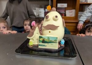 Van preparar una mona molt maca amb un personatge al qui vam batejar com a Pepito Sobirans! A més, és una mona molt especial perquè hi van posar fins i tot una foto de la nostra escola. Ens l’han regalada per portar-la a l’escola i compartir-la tots junts abans d’anar de vacances. Ha estat una experiència molt dolça i especial. Moltes gràcies per convidar-nos!