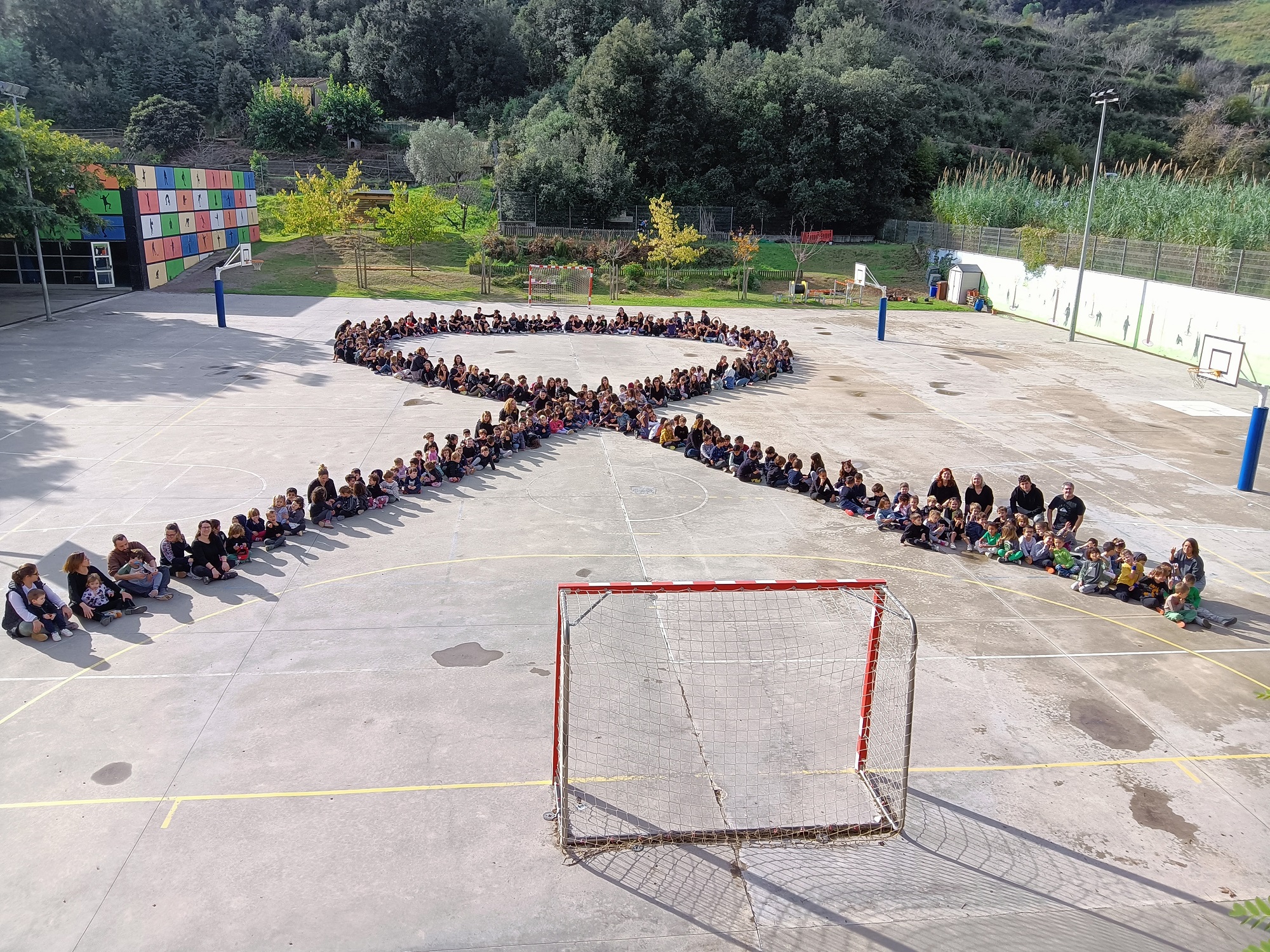 Aquest matí en solidaritat amb el País Valencià ens hem trobat tot l’alumnat de l’escola al pati de grans per formar un llaç gegant i així homenatjar les víctimes de la DANA. És un tema que s’ha tractat a l’escola aquests dies tant a nivell de les notícies que han pogut veure els infants a casa com nivell acadèmic parlant del factor meteorològic. En col·laboració amb el poble des de l’escola enviarem material escolar a València la setmana vinent.